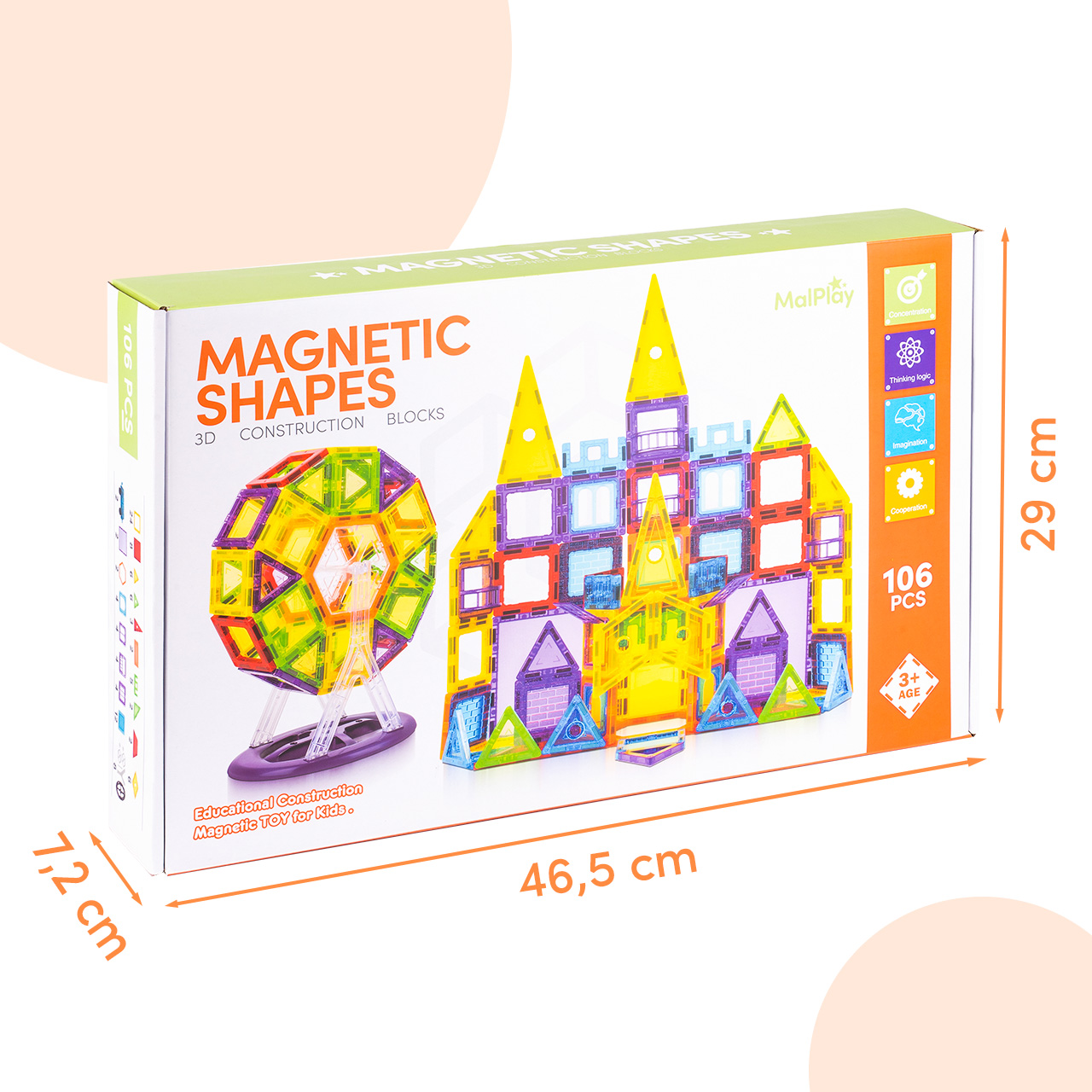 • Edukacyjne klocki magnetyczne 106 elementów