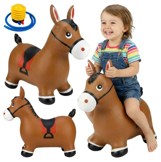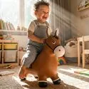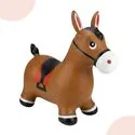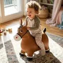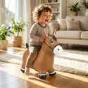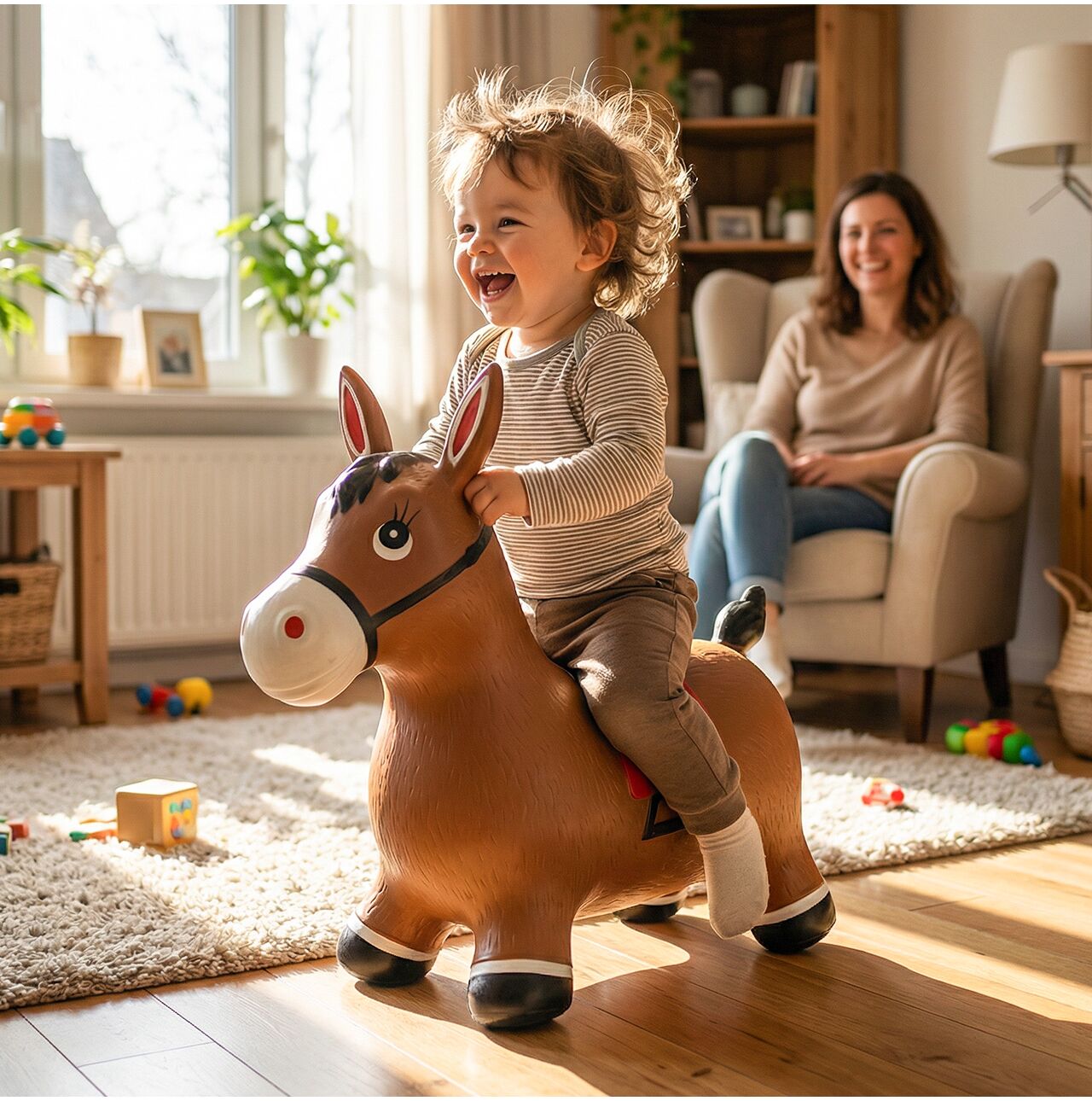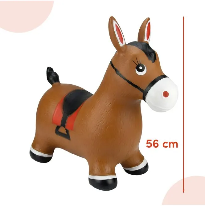 Koń został zaprojektowany tak, aby dziecko mogło wygodnie usiąść i stabilnie trzymać się podczas zabawy. Uszy pełnią funkcję uchwytów, dzięki czemu maluch ma lepszą kontrolę podczas skakania i odbijania. Odpowiedni kształt całej zabawki sprawia, że dziecko szybko łapie pewność siebie i chętnie wraca do kolejnych przejażdżek.