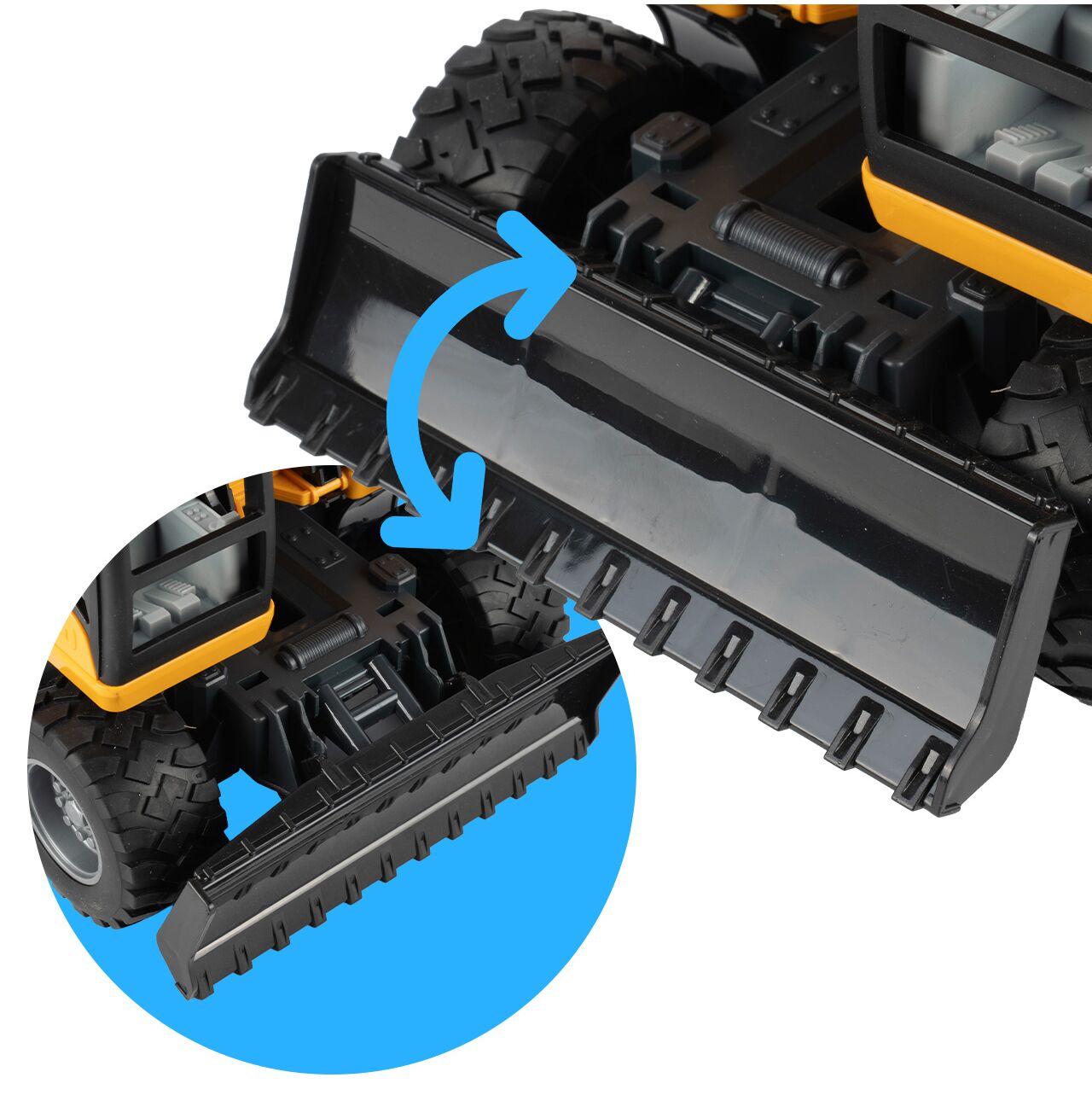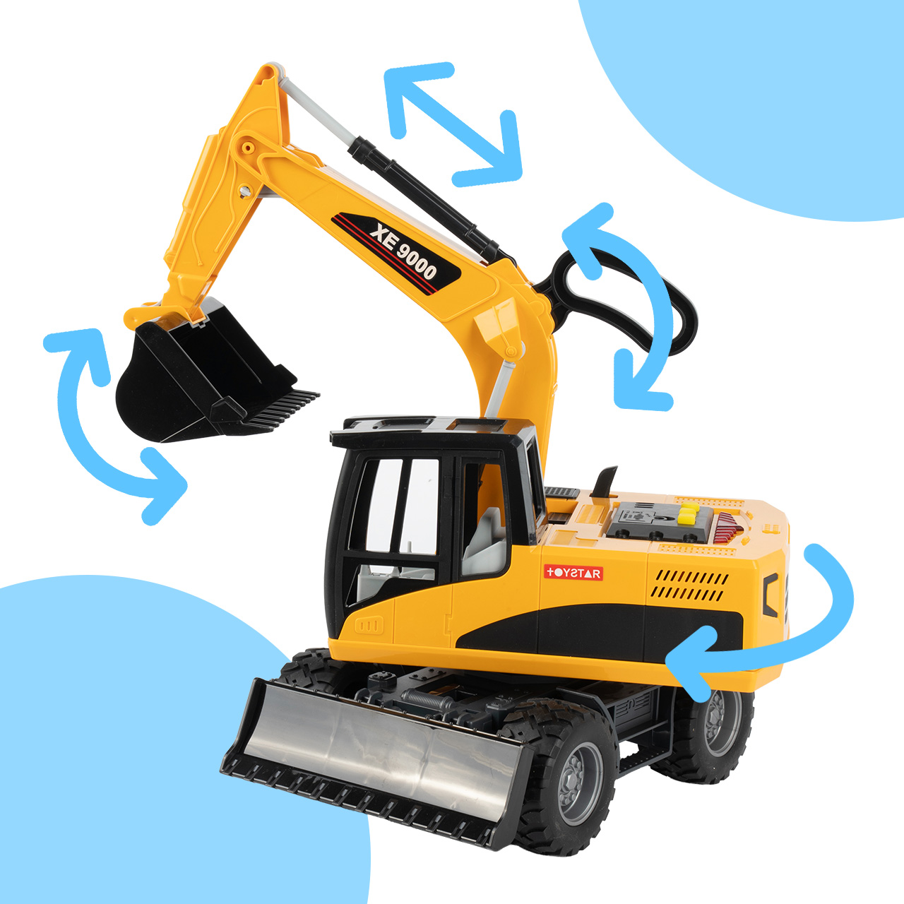 Koparka została zaprojektowana tak, aby zabawa była bardziej dynamiczna i realistyczna. Obrotowy korpus pozwala zmieniać kierunek pracy maszyny i odgrywać różne scenariusze budowlane bez konieczności przestawiania całej zabawki. Dziecko może poczuć się jak operator prawdziwej koparki i jeszcze mocniej wejść w zabawę.