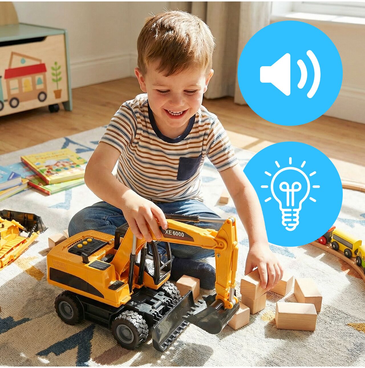 Efekty świetlne i dźwiękowe sprawiają, że zabawa jest jeszcze bardziej ekscytująca. Dziecko nie tylko porusza maszyną, ale ma też poczucie, że obsługuje prawdziwy pojazd roboczy. To detal, który bardzo mocno zwiększa atrakcyjność zabawki i sprawia, że maluch chętniej wraca do niej każdego dnia.