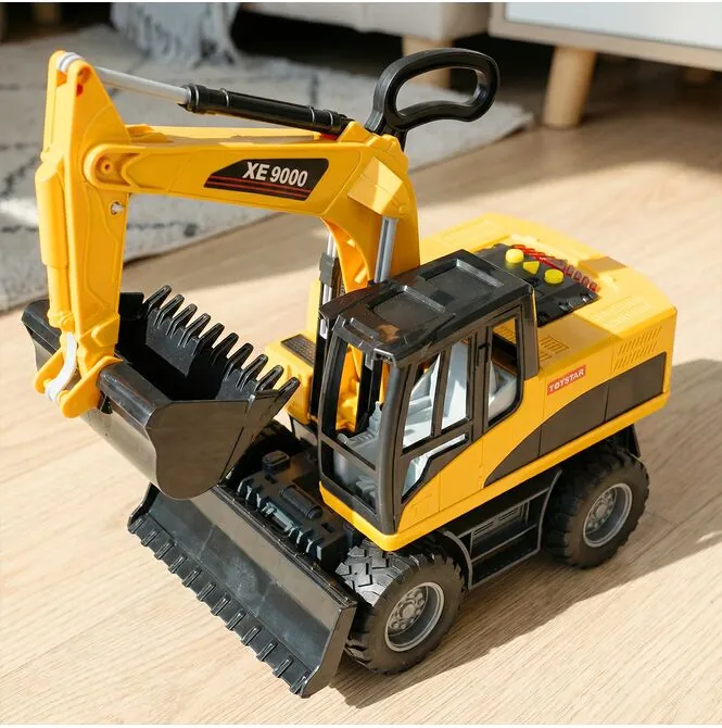 To nie jest mała, niepozorna zabawka, tylko duża koparka, która naprawdę przyciąga uwagę dziecka. Długość około 35 cm sprawia, że wygląda konkretnie, solidnie i od razu zachęca do zabawy. Taki rozmiar daje lepszy efekt wizualny, większą wygodę podczas sterowania i dużo więcej radości niż w przypadku małych modeli.