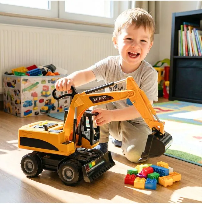 To świetny wybór nie tylko dla zabawy, ale też dla rozwoju dziecka. Sterowanie koparką wspiera koordynację ręka–oko, ćwiczy precyzję ruchów i rozwija wyobraźnię przestrzenną. Dziecko planuje, przenosi, ustawia i odgrywa role, a więc bawi się aktywnie, kreatywnie i z zaangażowaniem.