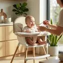 • Dodatkowo, tacka jest podwójna – jedną część można wyjąć i szybko przetrzeć po posiłku, co ułatwia codzienne użytkowanie.