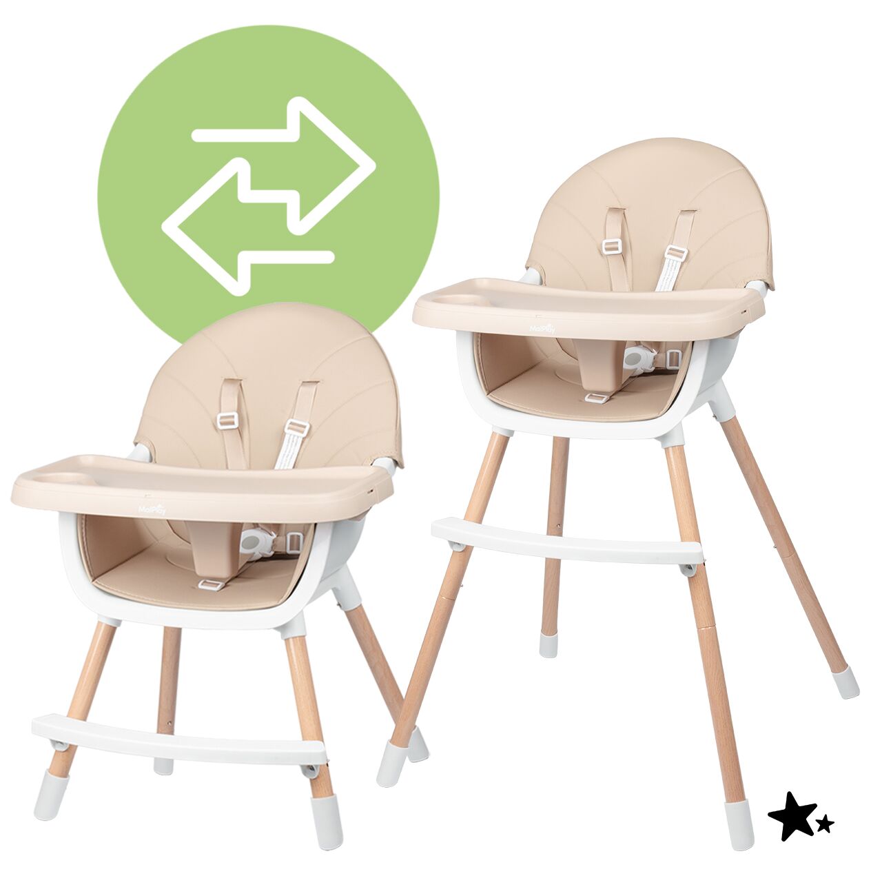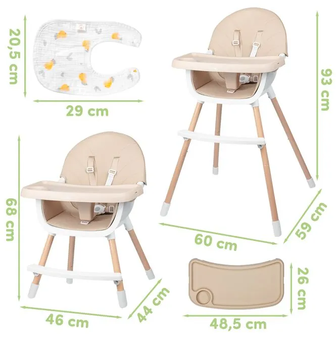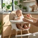 • 3w1 – wysokie i niskie krzesełko do karmienia oraz samodzielne krzesełko dla starszego dziecka