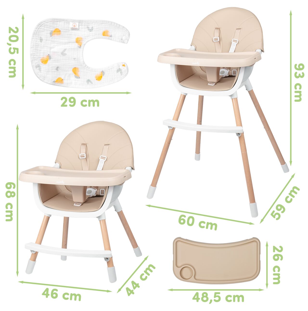 • Wysokie krzesełko do karmienia z tacką