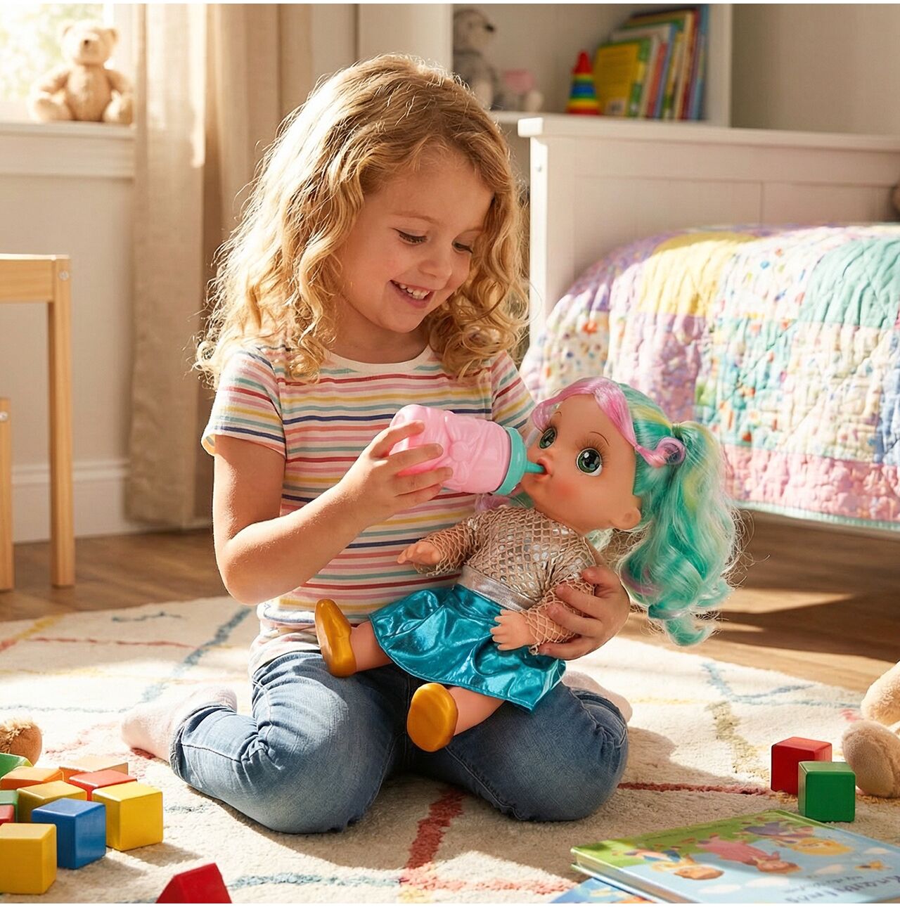 Laleczka nie tylko bawi, ale także wspiera rozwój dziecka. Zabawa w karmienie, czesanie i opiekę pomaga rozwijać wyobraźnię, empatię, kreatywność oraz zdolności manualne, a przy tym daje mnóstwo radości każdego dnia.