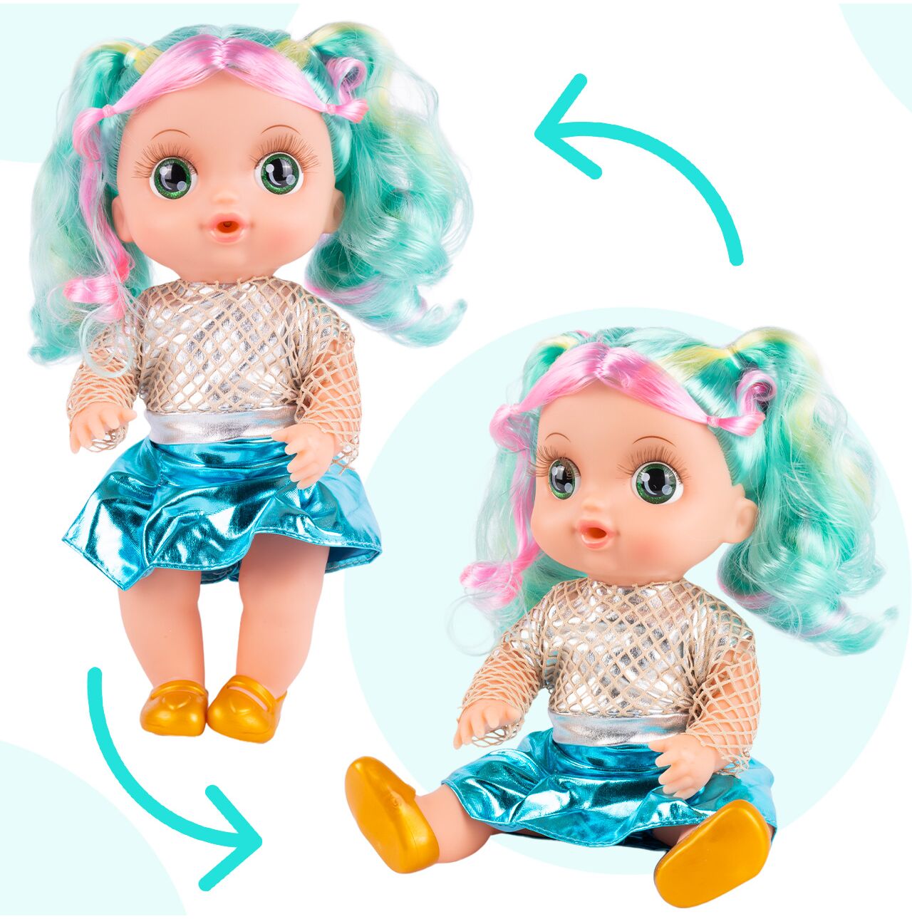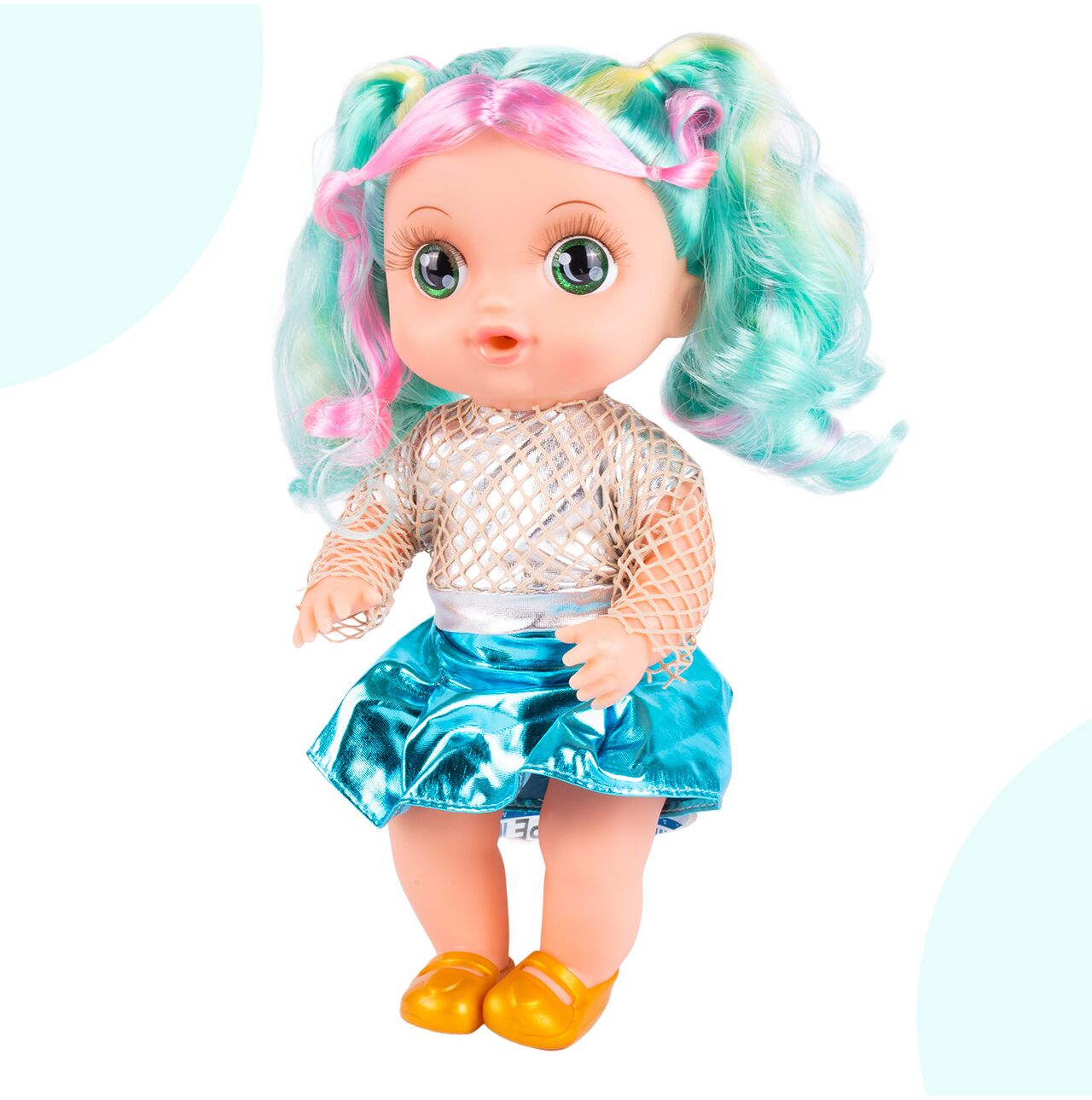 Ta śliczna laleczka o wysokości 30 cm przyciąga uwagę pięknymi, kolorowymi włosami, dużymi oczami i modnym strojem. Jej wyjątkowy wygląd sprawia, że szybko staje się ulubioną towarzyszką codziennych zabaw, przytulania i odgrywania różnych scenek.
