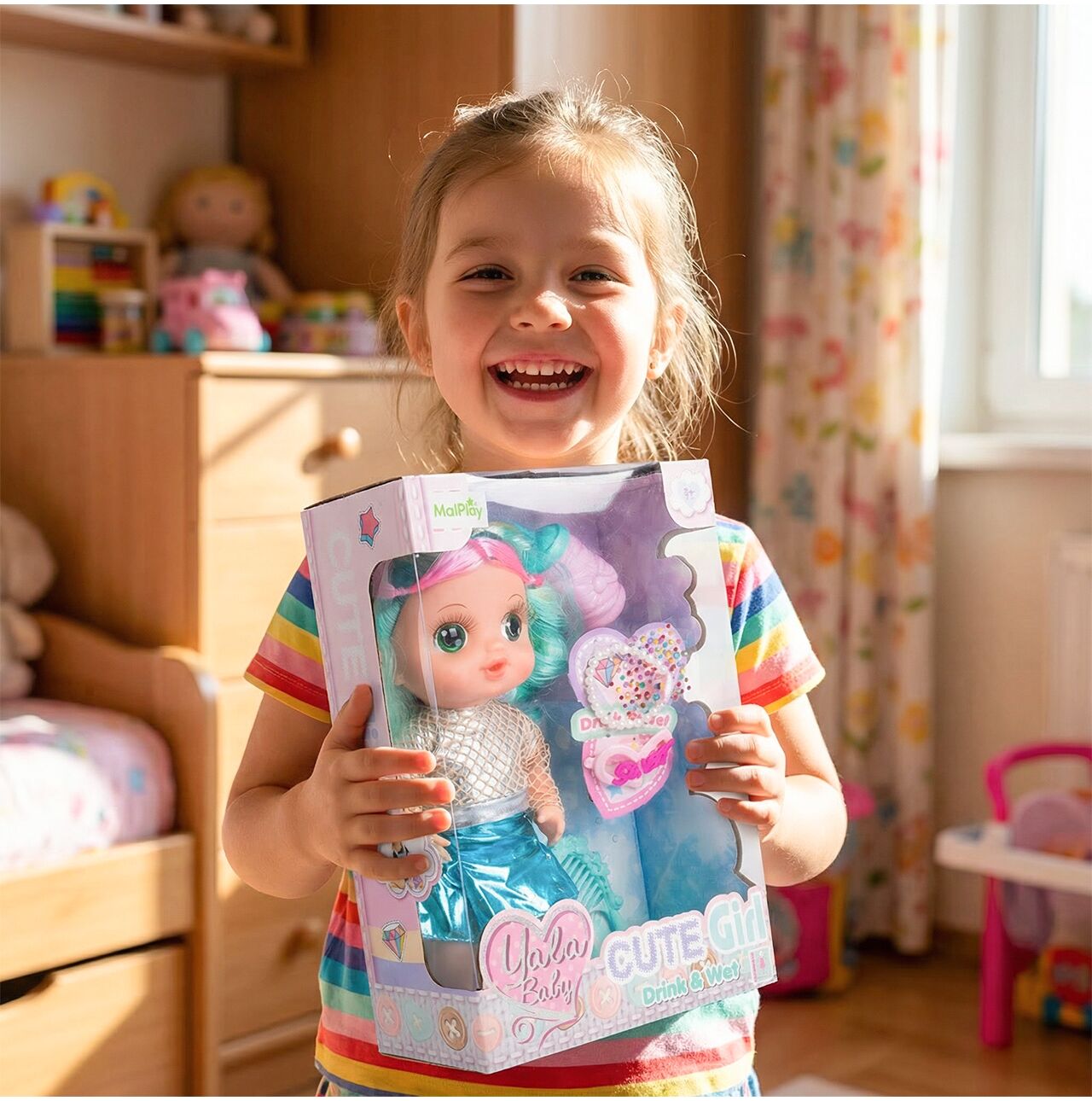 Lalka posiada funkcję picia, dzięki czemu zabawa staje się jeszcze bardziej realistyczna i angażująca. Dziecko może karmić swoją laleczkę butelką i wcielać się w rolę troskliwego opiekuna, co daje mnóstwo radości i pozwala tworzyć własne, pełne emocji historie.