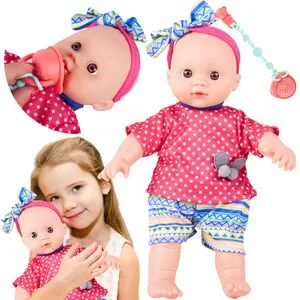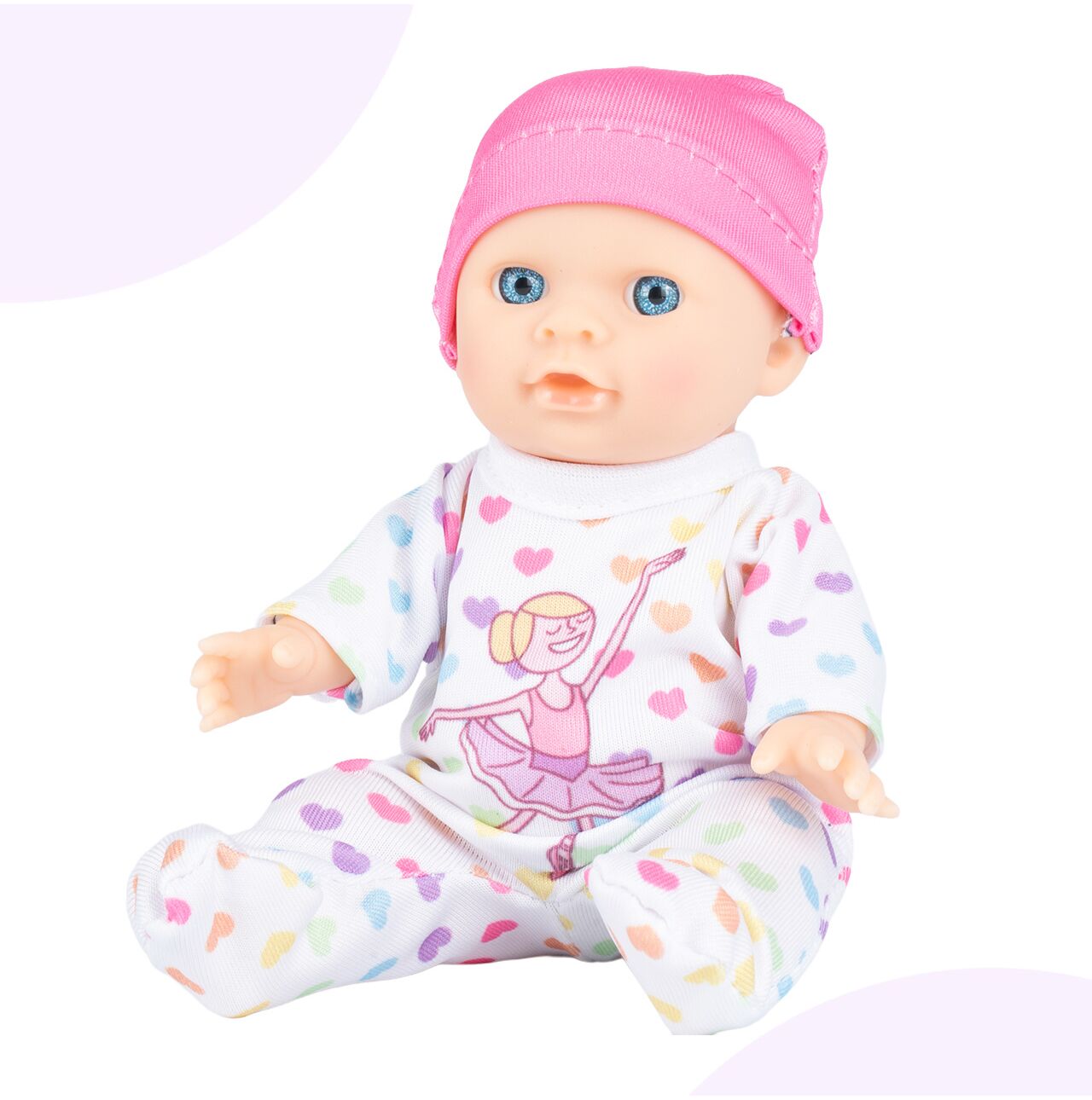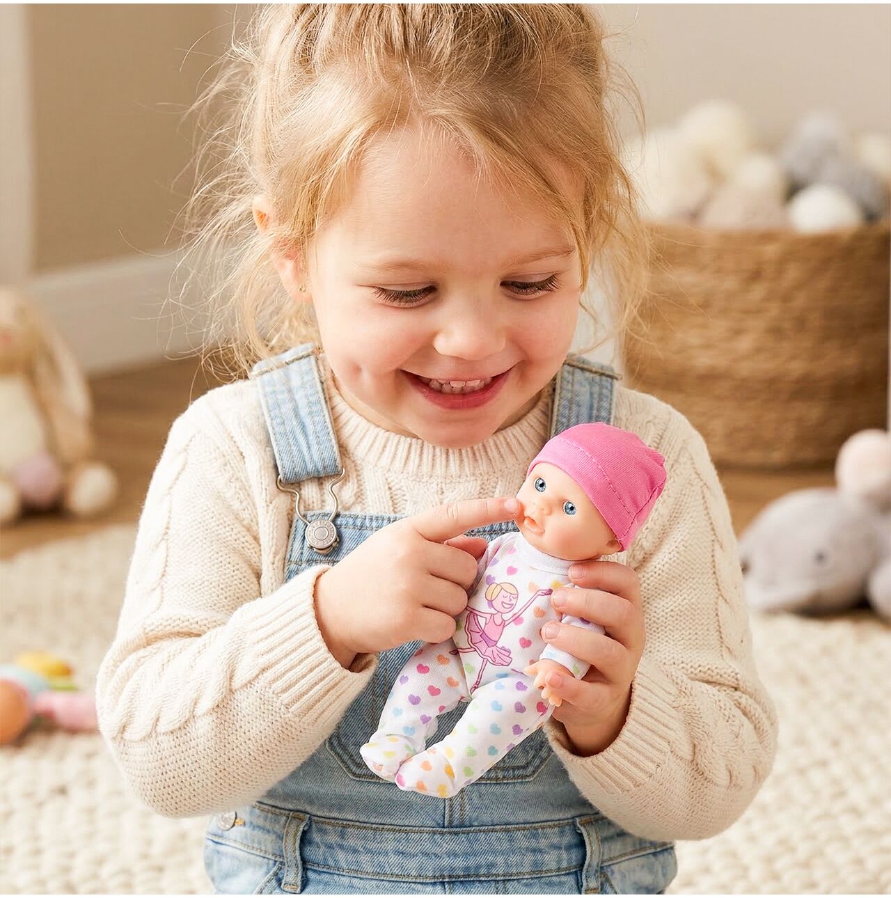 Urok tej lalki tkwi w prostocie i ciepłym, dziecięcym wyglądzie. Różowa czapeczka, delikatna twarz i słodkie ubranko sprawiają, że lalka od razu kojarzy się z opieką, bliskością i bezpieczną zabawą. To świetny wybór dla dziecka, które lubi przytulać zabawki i tworzyć z nimi codzienne rytuały.