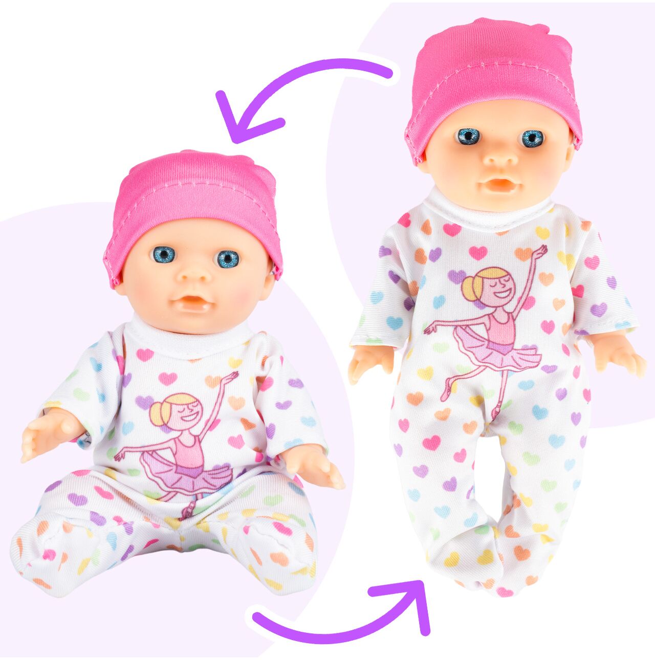 - Czapeczka w intensywnym różowym kolorze – dodaje uroku i sprawia, że lalka wyróżnia się na tle wielu podobnych modeli