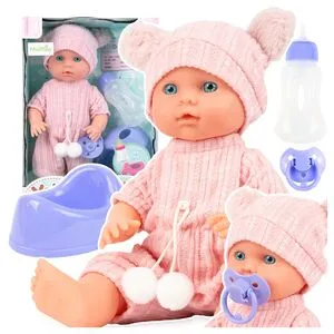 - Materiał: tworzywo sztuczne + tkanina (ubranko)