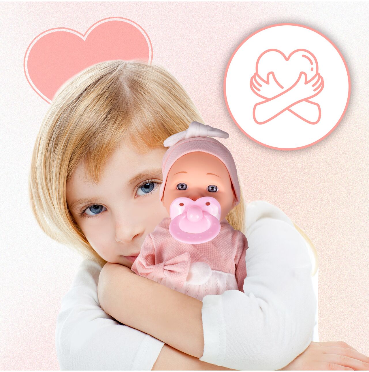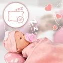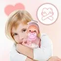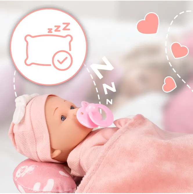 Dołączony smoczek można włożyć do ust lalki. To prosty rekwizyt, który zamienia zwykłą zabawę w realistyczną opowieść – „bobas zasypia”, „potrzebuje smoczka”, „jest spokojny”.