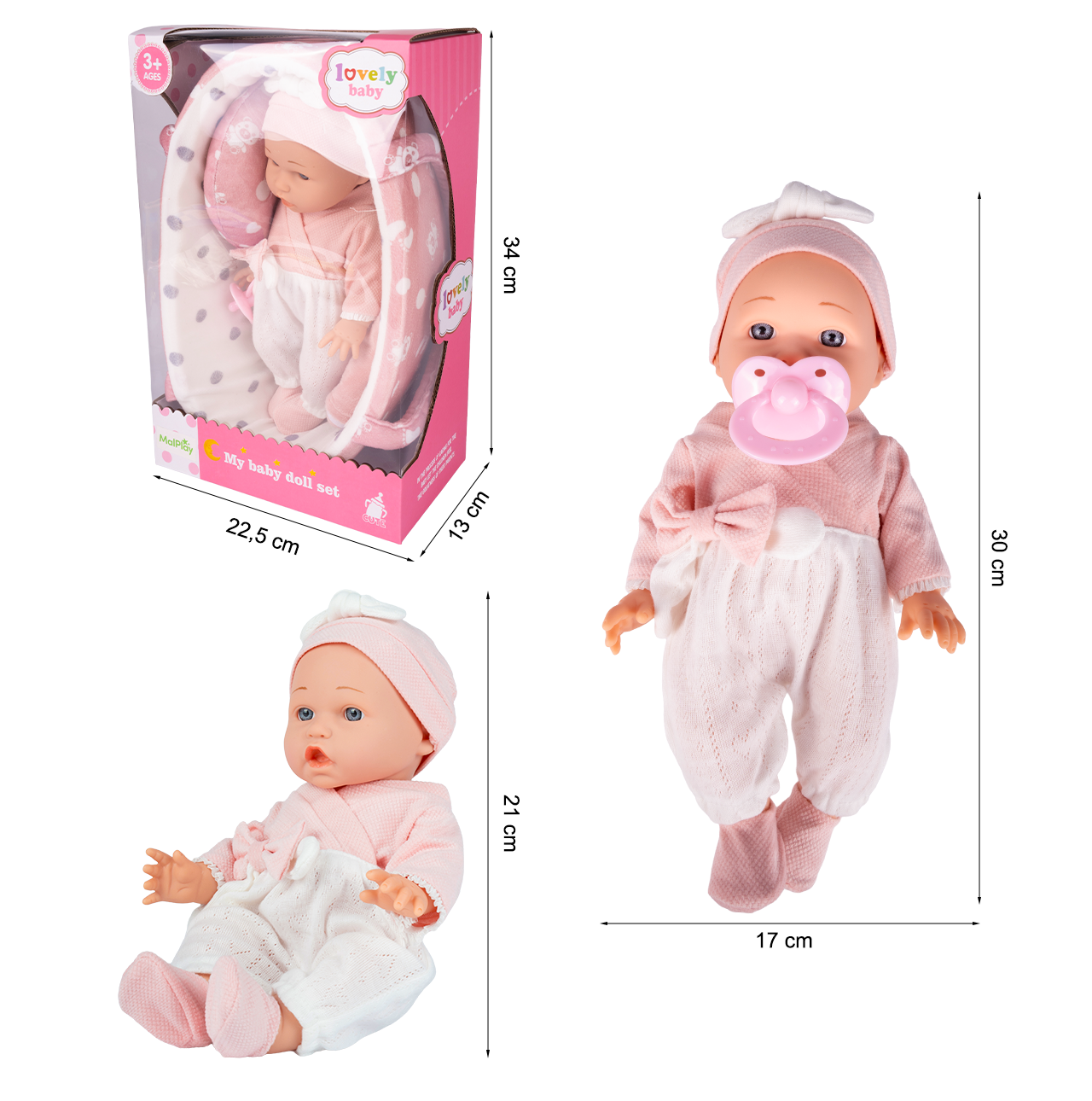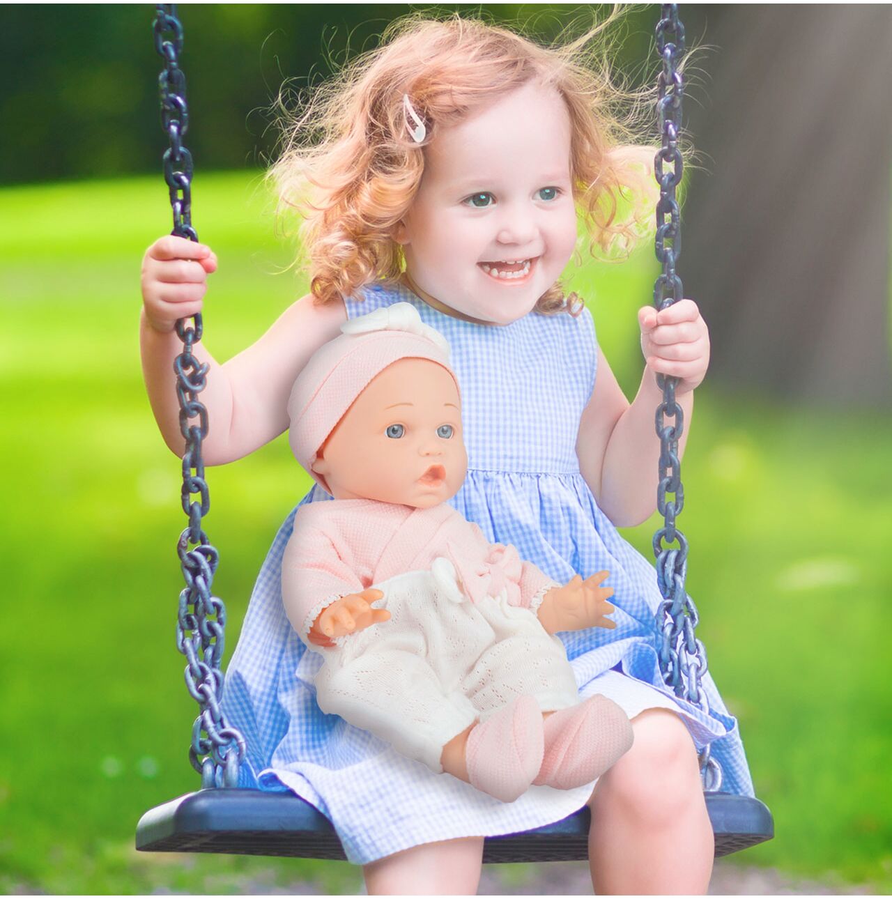 - Realistyczny bobas 12" (ok. 30 cm) – wielkość w sam raz dla rączek dziecka.