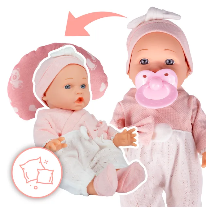 - Realistyczny smoczek – wspiera scenariusze zabawy i wyciszanie bobasa.