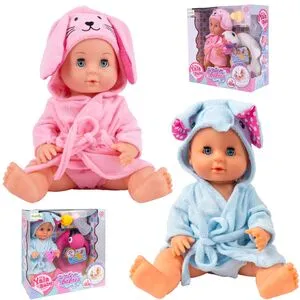 Lalka z miękkim brzuszkiem, główka i rączi gumowe, baterie umieszczone w kieszonce na brzuszku także można je bez problemu wyciągnąć.