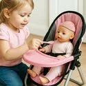Stabilne krzesełko do karmienia pomaga w realistycznej zabawie: czas karmienia, nauka rytuałów i troski. Wysokie siedzisko ułatwia podawanie posiłków, a materiałowe oparcie dba o wygodę lalki.