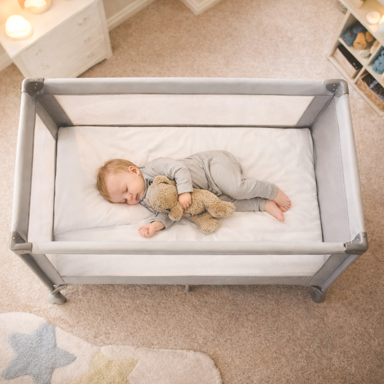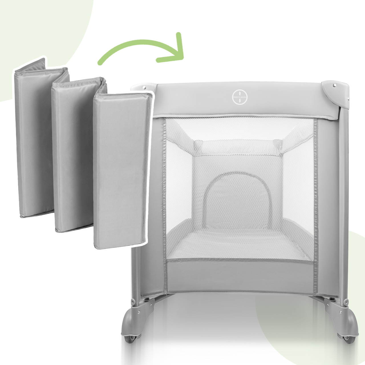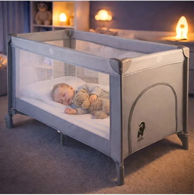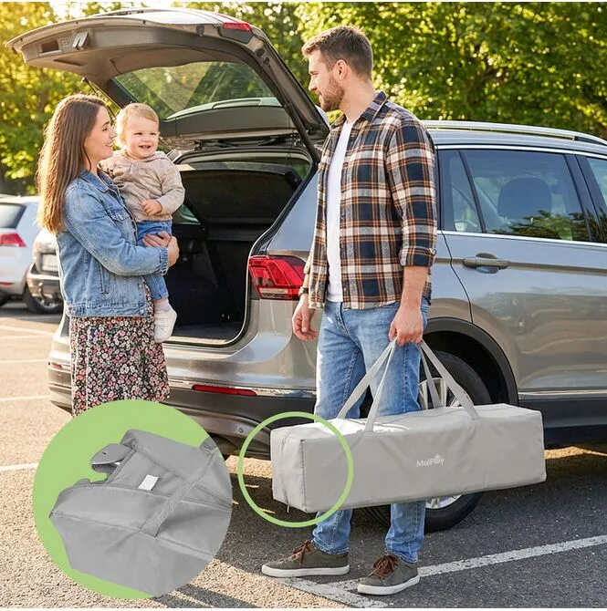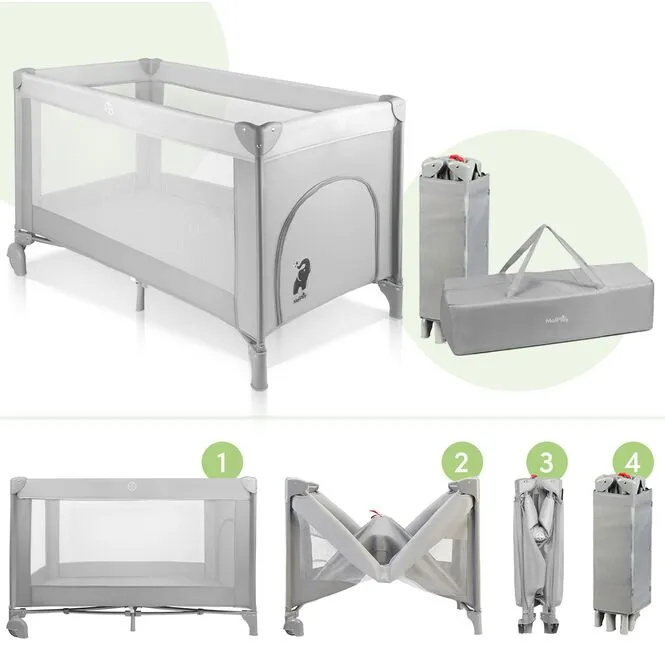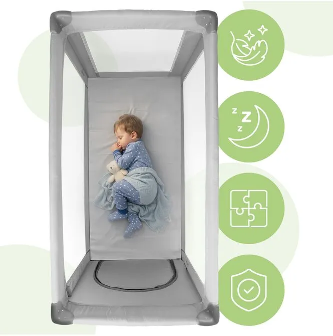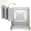 Dzięki kompaktowym wymiarom po złożeniu, łóżeczko zmieści się w bagażniku samochodu i sprawdzi się zarówno na wakacjach, jak i podczas wizyt u bliskich.