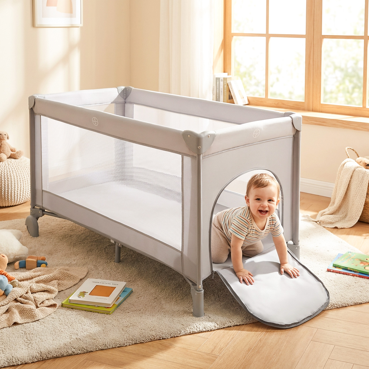 Dzięki otwieranemu wejściu bocznemu na zamek błyskawiczny, starsze dzieci mogą samodzielnie wchodzić i wychodzić z łóżeczka. To nie tylko wygoda, ale również sposób na rozwój samodzielności malucha i bezpieczną zabawę w roli „bazowego obozu”.