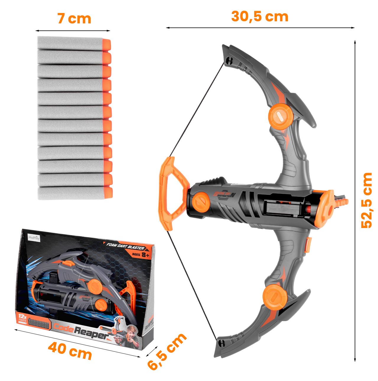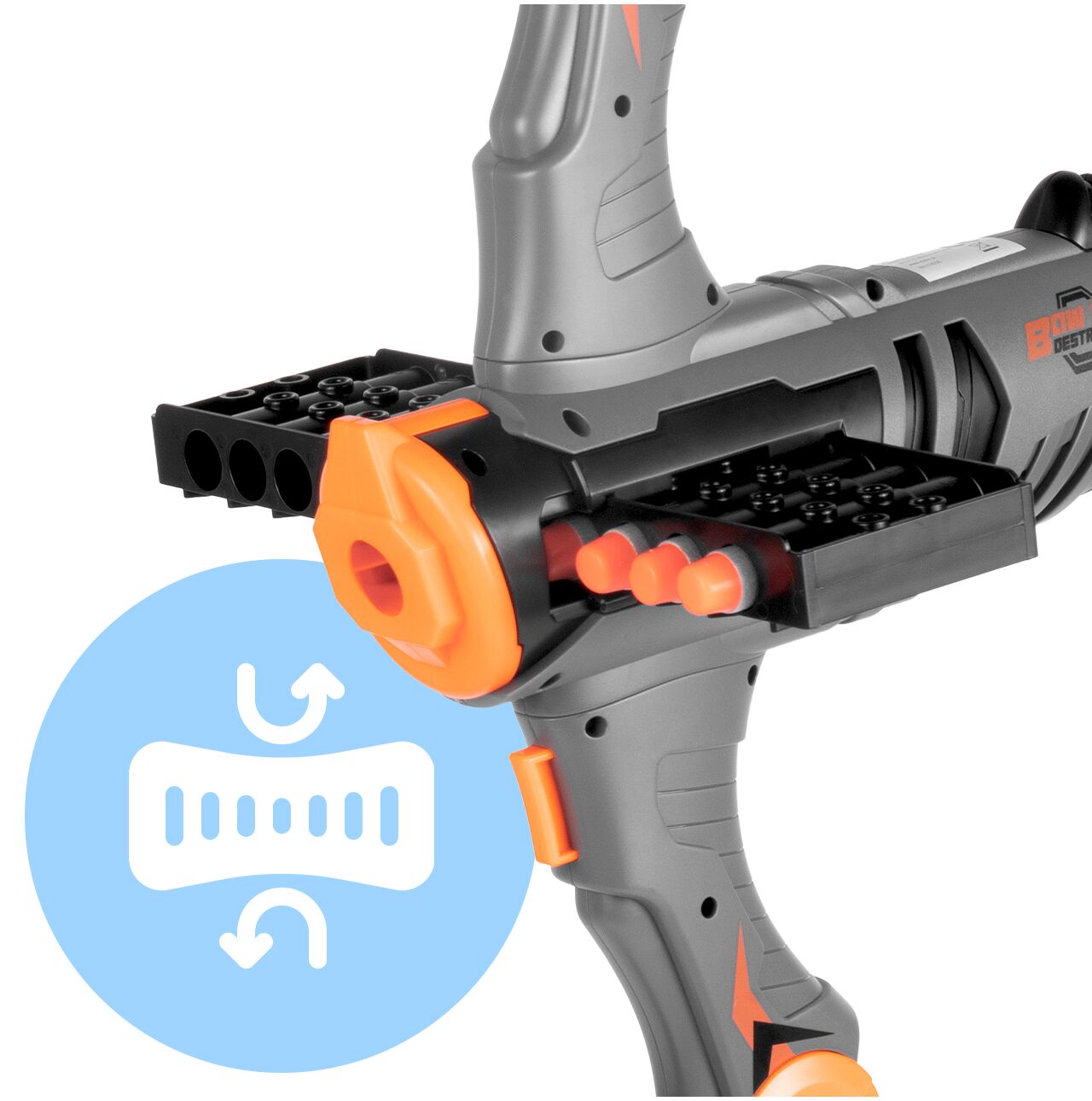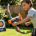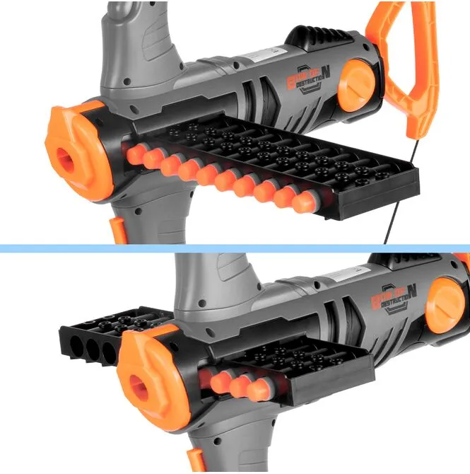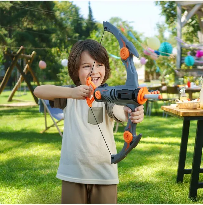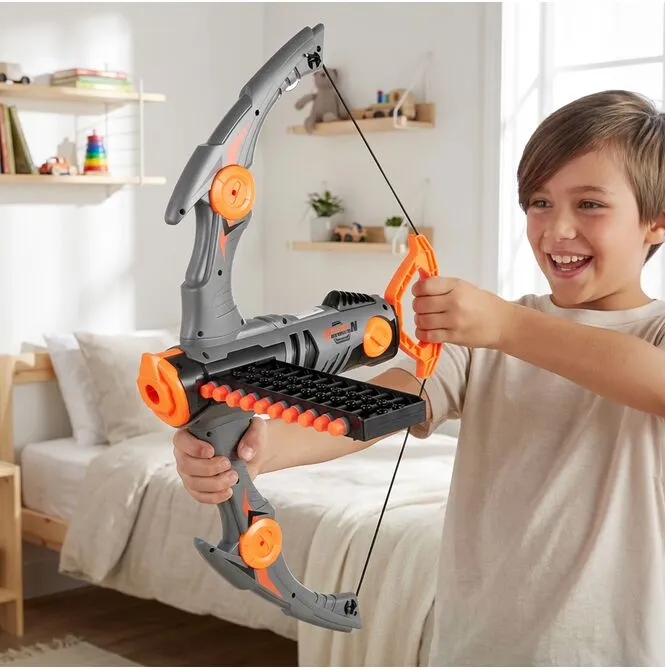 Zabawka jest prosta w ogarnięciu: składasz elementy kuszy, ładujesz strzałki do magazynka, przeładowujesz uchwytem i strzelasz. Dzięki dołączonym akcesoriom od razu można zacząć zabawę – bez dokupowania. Świetnie sprawdza się w zabawie solo, z rodzeństwem i ekipą na podwórku.