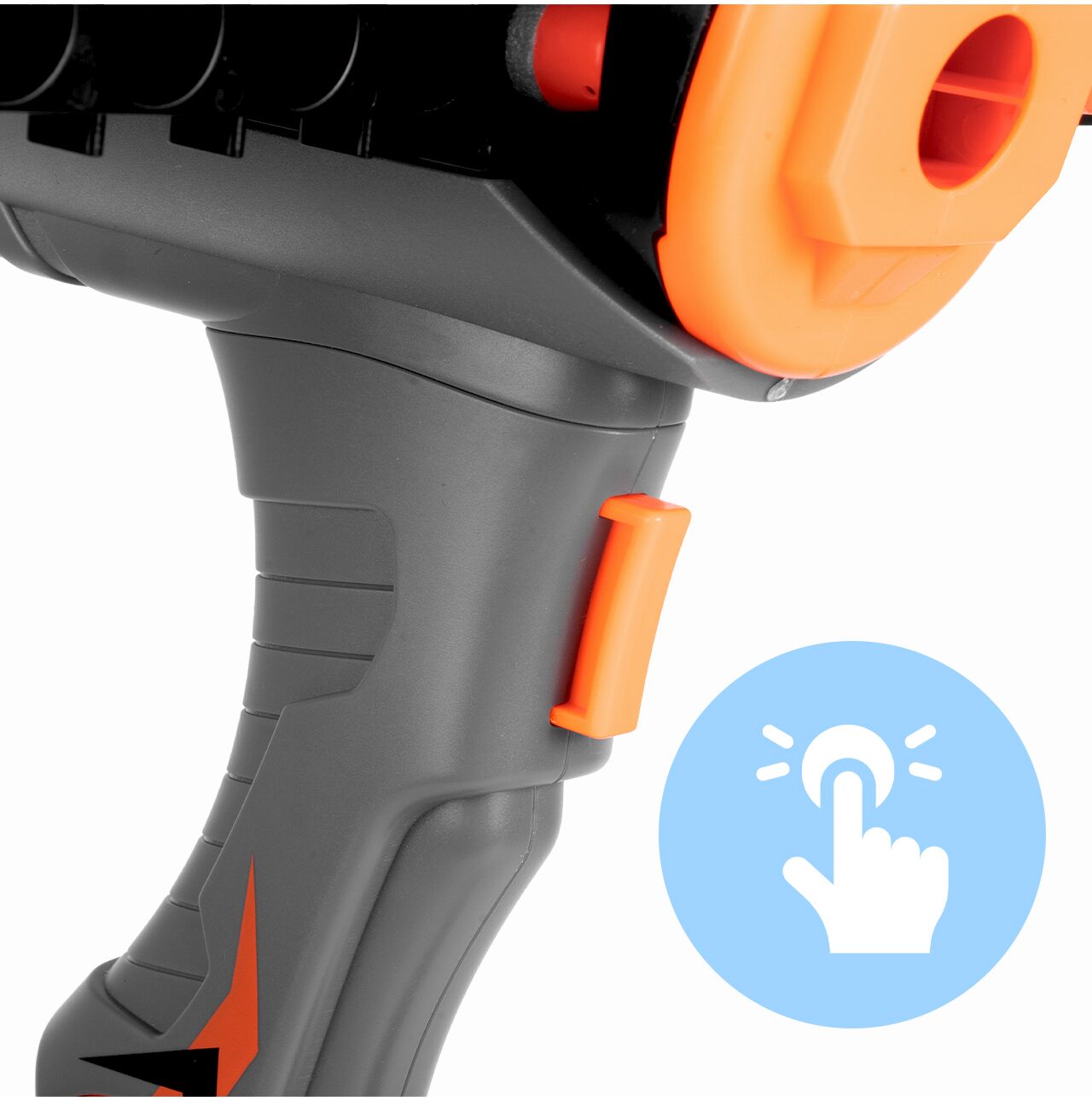 - Stabilny chwyt i wygodny uchwyt naciągu – łatwiej celować, lepsza kontrola podczas zabawy