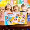 - Kolorowa grafika: lew, piesek, owieczka, słoń, żabka, małpka, kogut, lisek, krówka