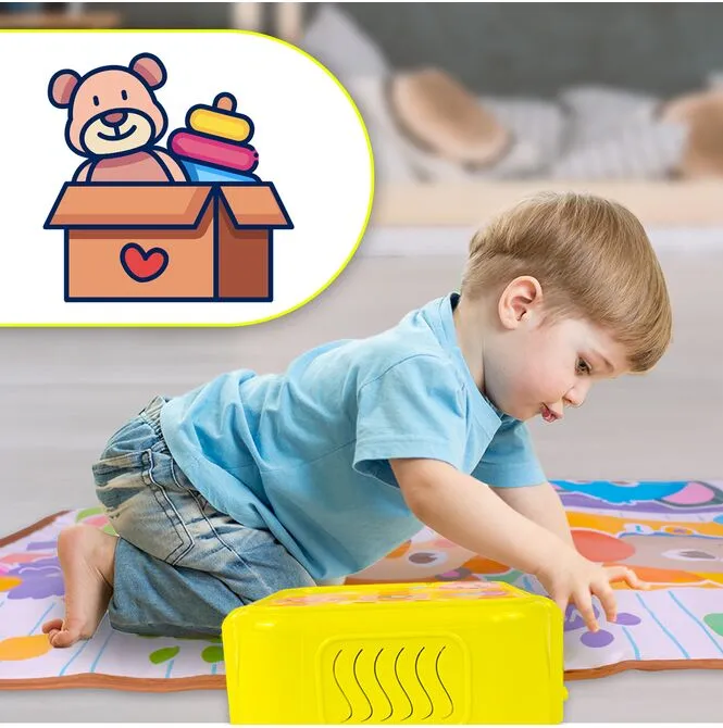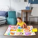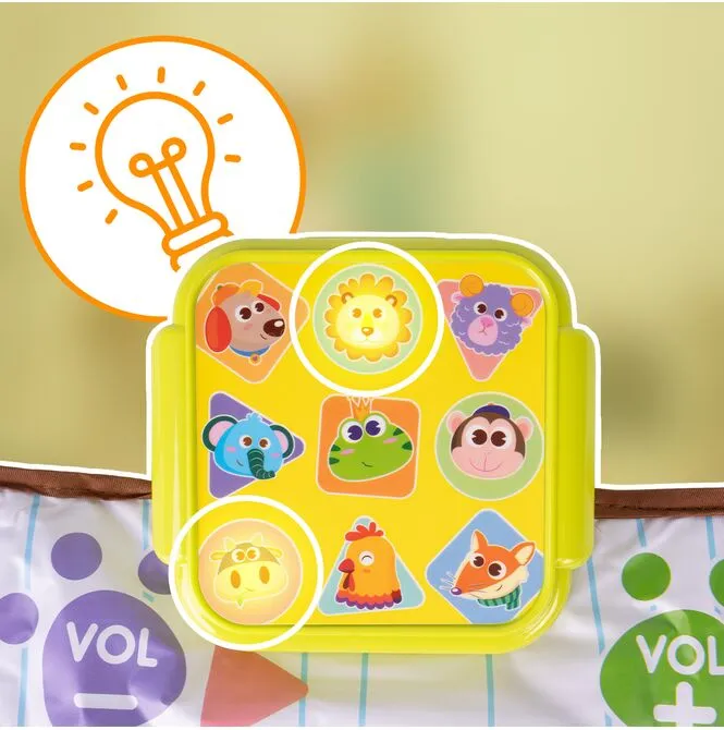 Włącz melodie i pozwól, by rytmy zachęcały do tańca. Tupanie po polach uruchamia dźwięki, a regulacja głośności ułatwia dopasowanie zabawy do pory dnia.