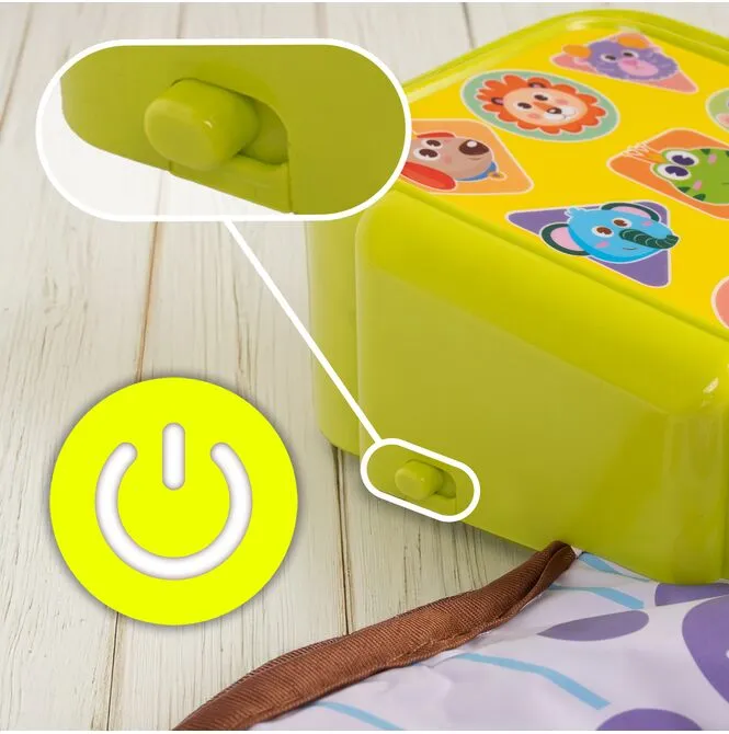 Miękka powierzchnia, antypoślizgowy spód, zaokrąglone krawędzie i fizyczny włącznik. Wszystkie przyciski są duże i czytelne – dziecko poradzi sobie samo już po chwili.