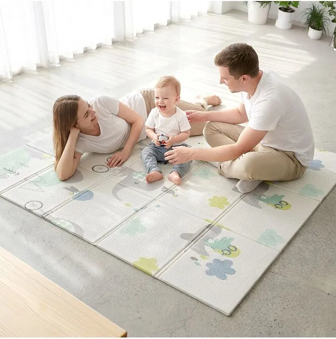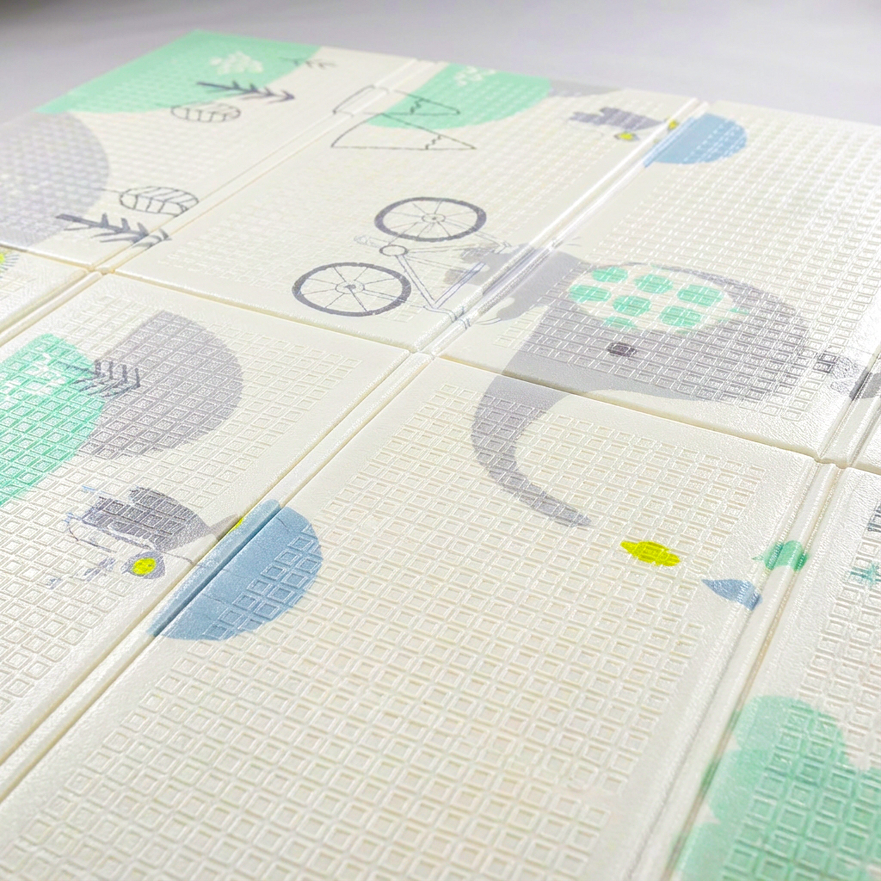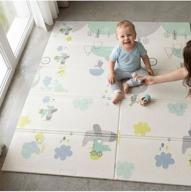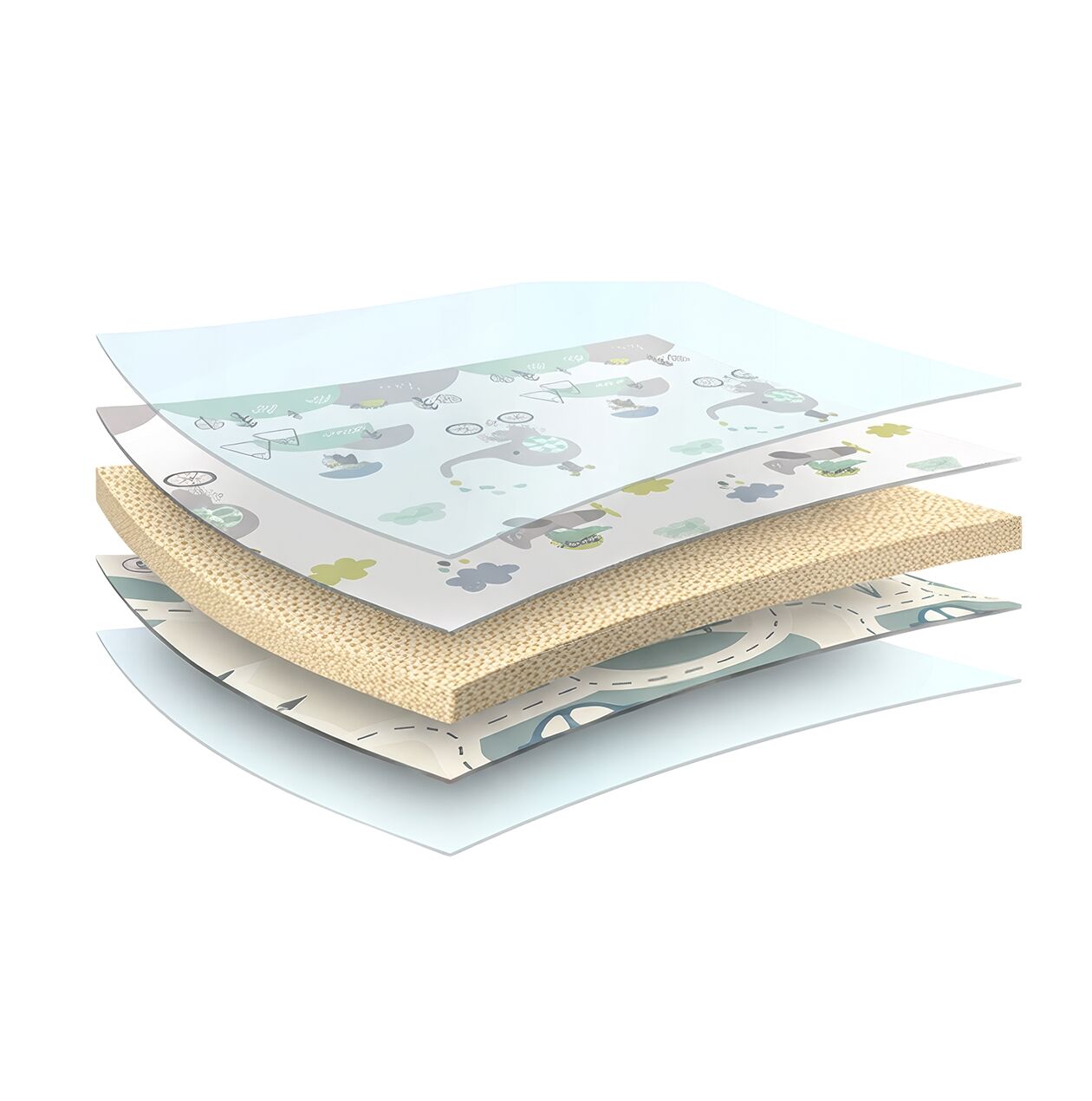 XPE doskonale amortyzuje każdy ruch dziecka, tworząc miękkie i elastyczne podłoże wspierające naukę turlania, raczkowania oraz siadania.