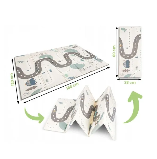 Mata piankowa MATIVO 120×180 cm została zaprojektowana tak, aby maksymalnie ułatwić codzienne użytkowanie. Dzięki konstrukcji składanej w systemie "harmonijkowym", rozłożenie maty zajmuje kilka sekund – wystarczy ją rozwinąć i położyć na podłodze. Po zakończonej zabawie można ją równie szybko złożyć i włożyć do dołączonej torby transportowej.