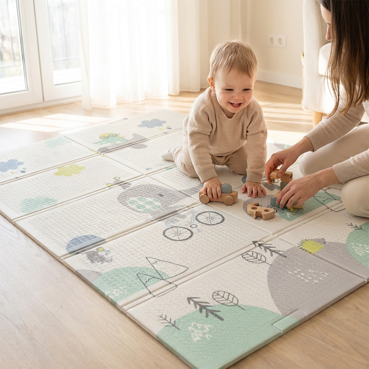 • Antypoślizgowa struktura – zwiększa bezpieczeństwo podczas zabawy, raczkowania i nauki chodzenia
