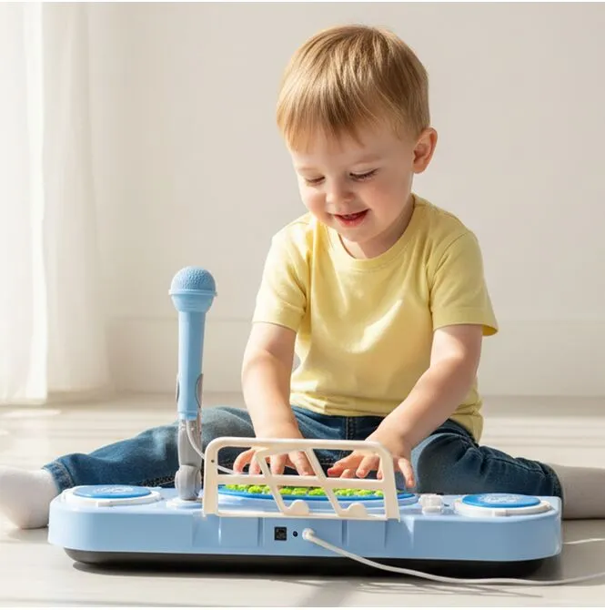 Organy wyposażono w niebieski mikrofon, dzięki któremu dziecko może nie tylko grać, ale też śpiewać – jak na prawdziwej scenie! Zabawa w koncert rozwija pewność siebie, koordynację i ekspresję. To idealny wybór dla małych gwiazd, które kochają występować.