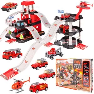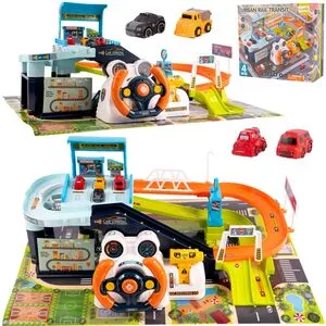 Zestaw posiada wiele zastosowań, ruchomych elementów, zjeżdżalni, podnośników. Samochody swobodnie przejeżdżają po całej trasie.