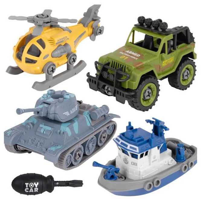 - realistyczny wygląd: wojskowy jeep, helikopter, czołg, łódź