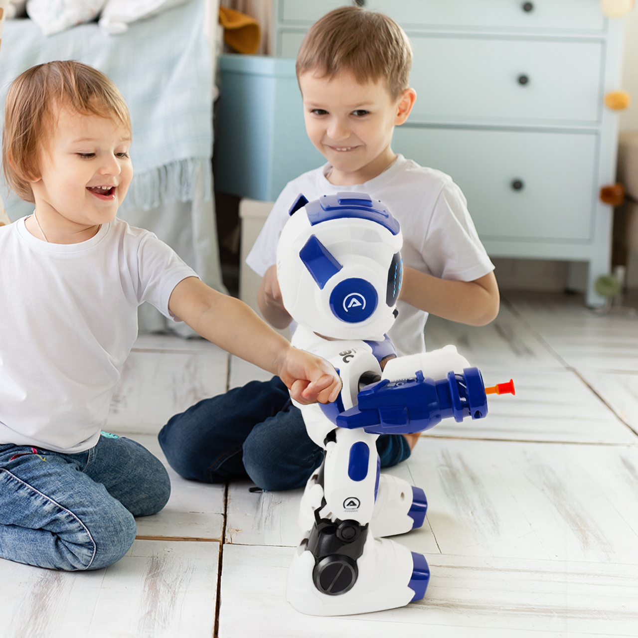 - Sterowanie 2.4 GHz – stabilne połączenie bez zakłóceń; kilka robotów może bawić się jednocześnie.