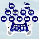 - Dwa krzyżaki kierunkowe odpowiadają za chodzenie przód/tył i skręty/obrót w miejscu.
