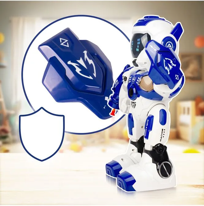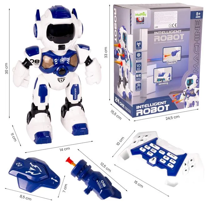 - Funkcje: jazda/chodzenie przód–tył, obrót, ruch ramion, strzał z wyrzutni, Program, Auto Demo, Touch Sensing (głowa), efekty LED i dźwięki