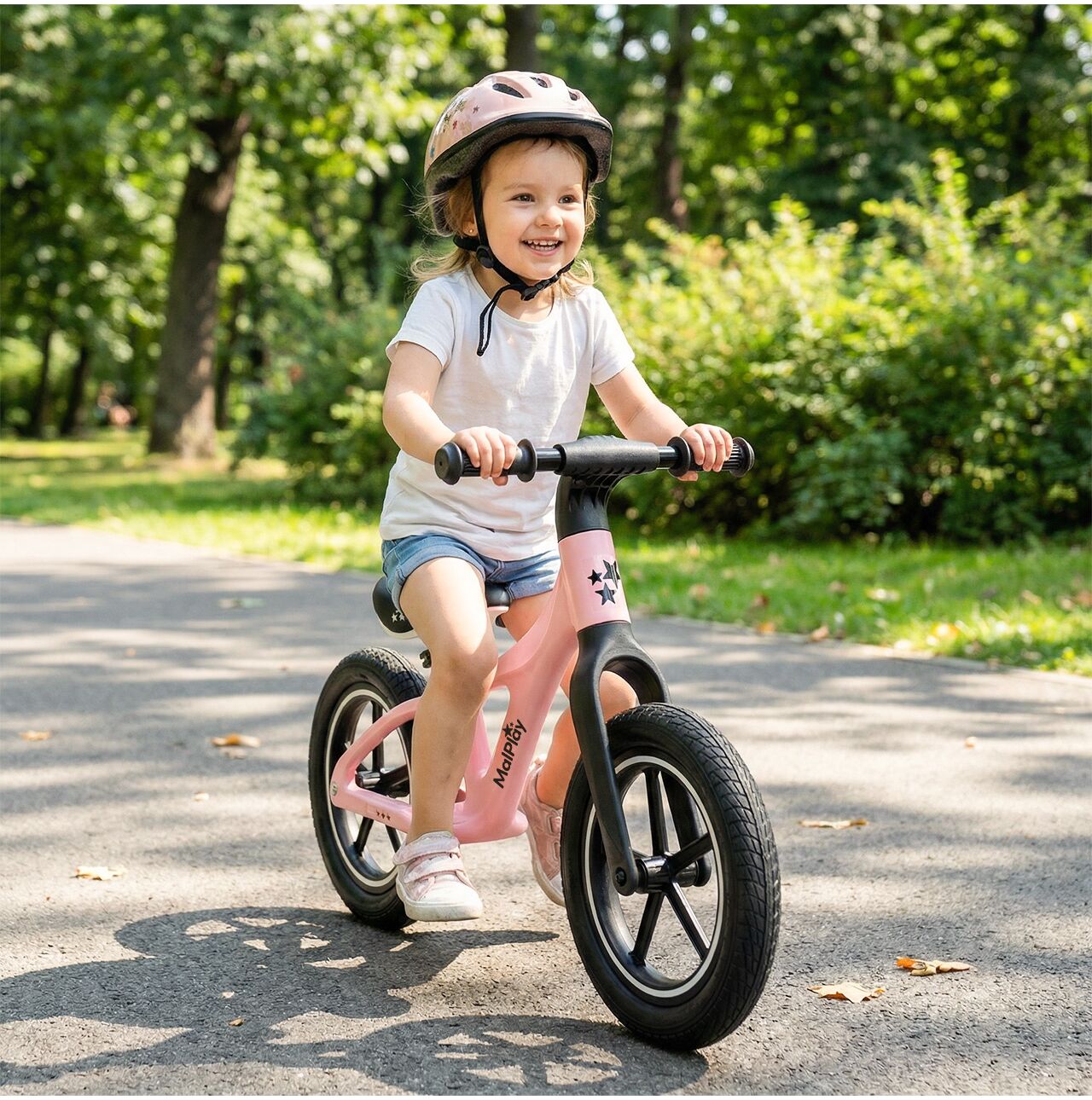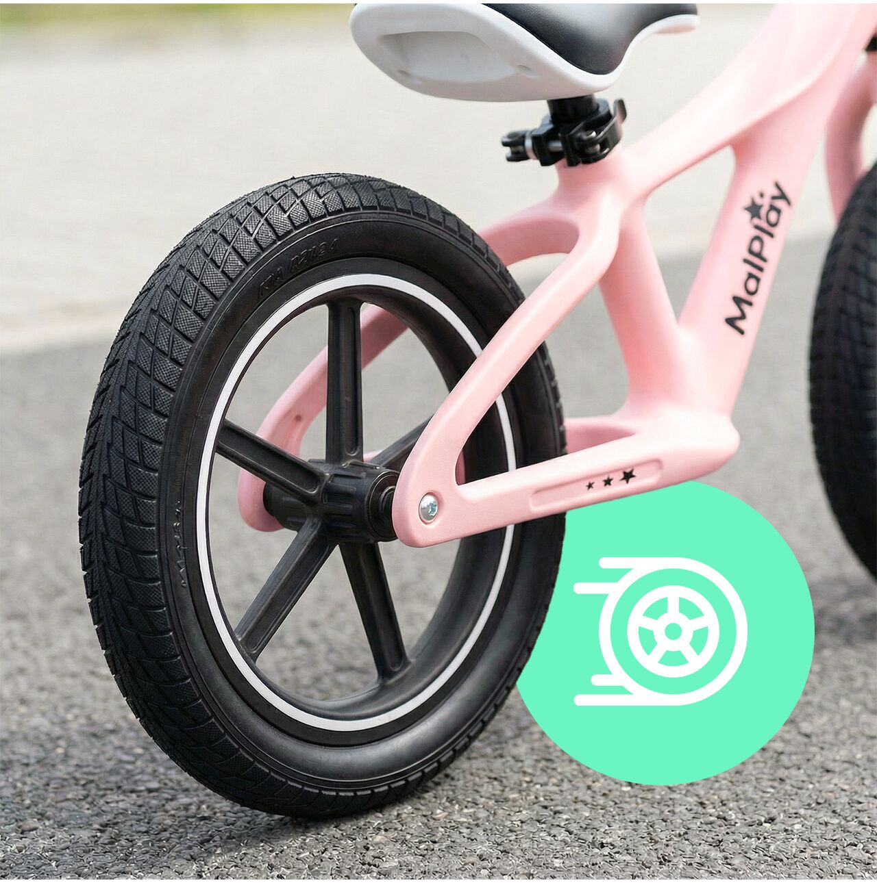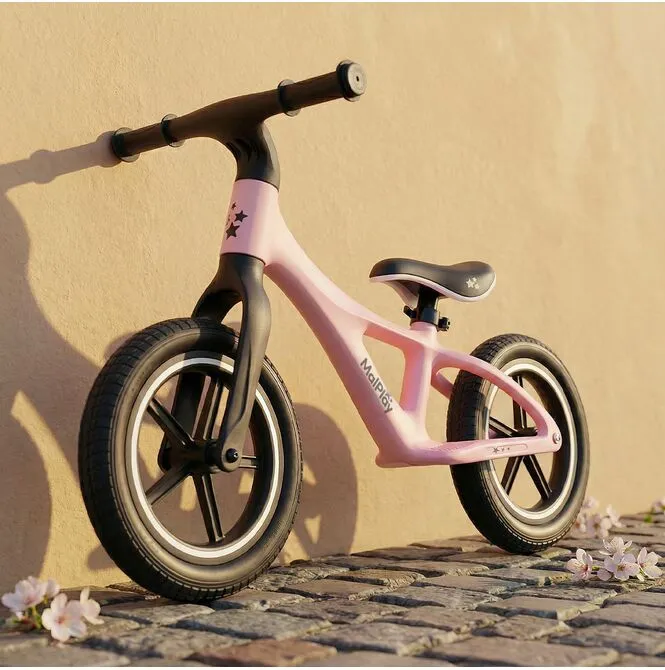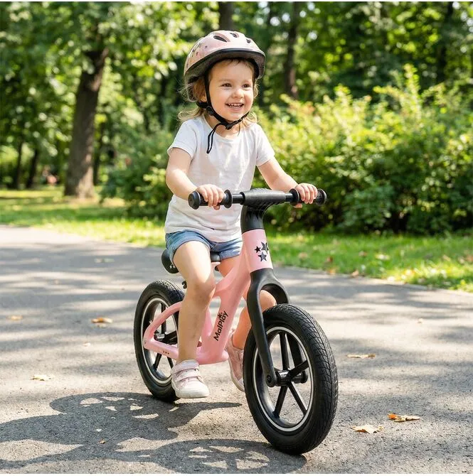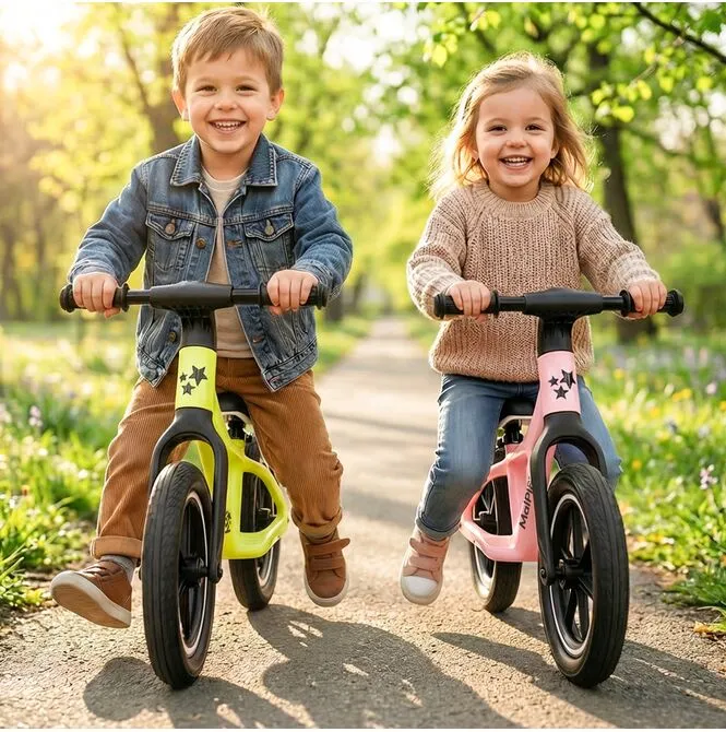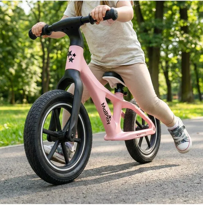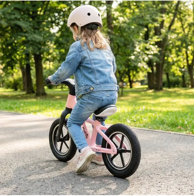 Dzięki temu rowerek waży tylko 3,4 kg – dziecko łatwiej utrzymuje równowagę, a Ty nie dźwigasz 6–7 kg metalu po placu zabaw.