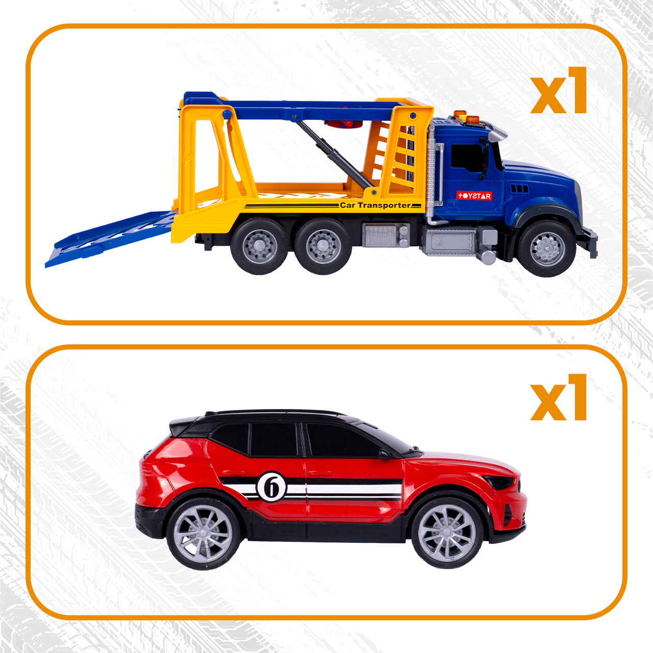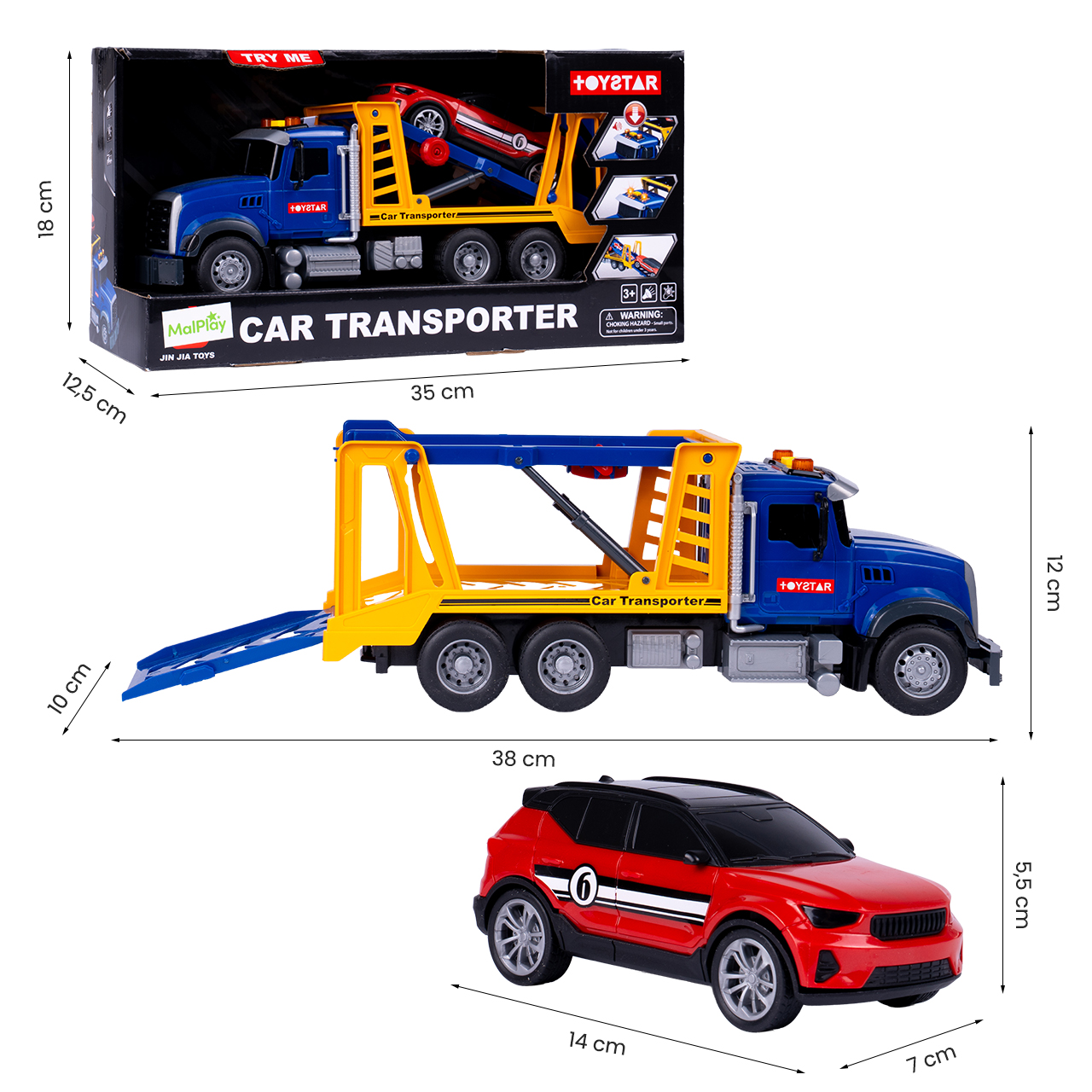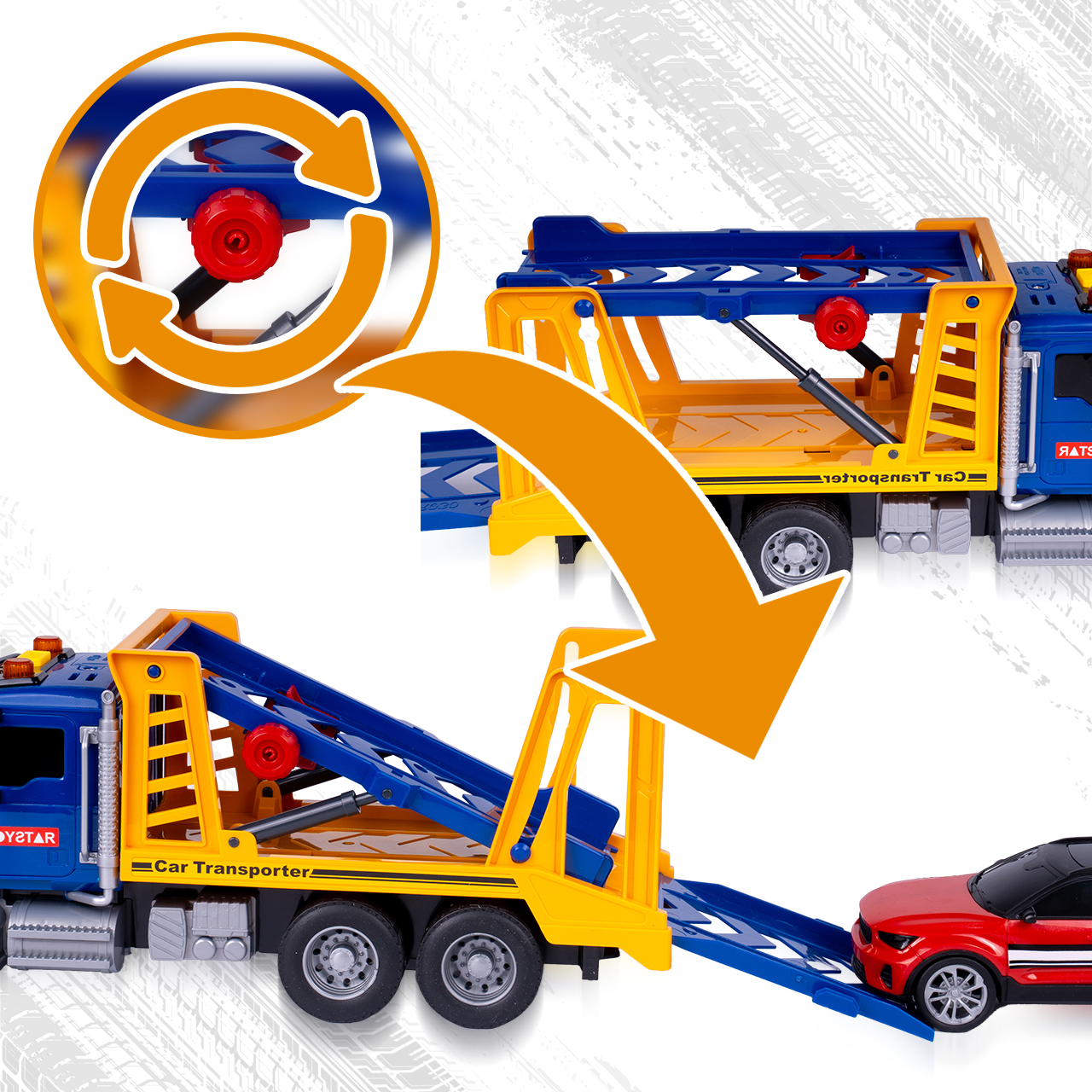 - 1× interaktywna laweta – car transporter (LED + dźwięki, ruchoma rampa)