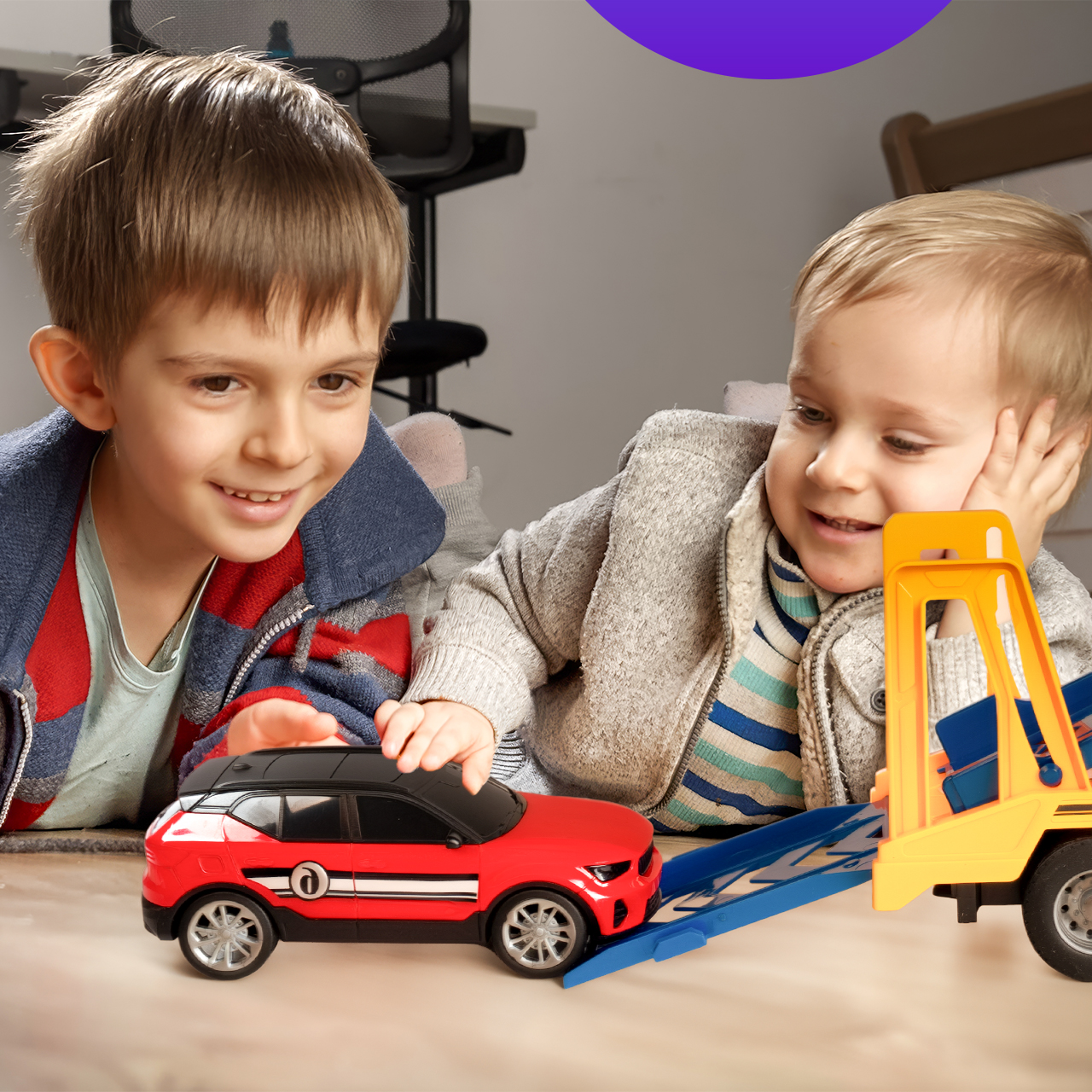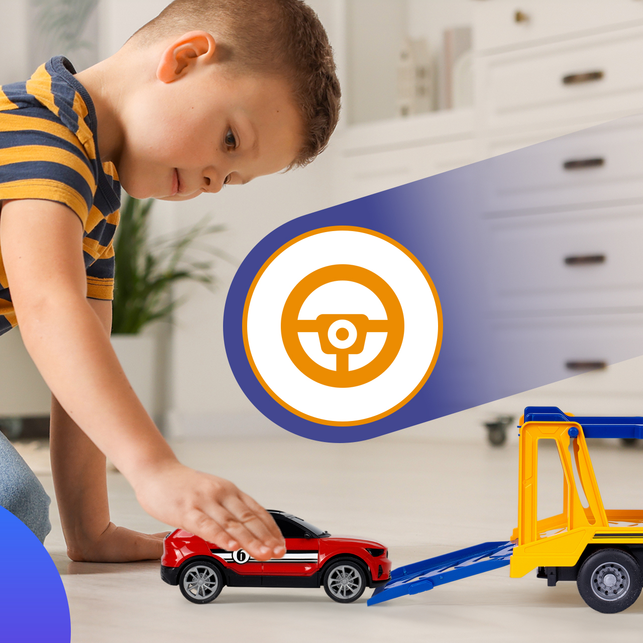 W pudełku masz wszystko do startu: lawetę z efektami i auto sportowe. Bawcie się w pomoc drogową, transport nowych aut do salonu, dojazd na tor wyścigowy albo serwis – łącz z innymi autkami dziecka, torami czy garażem, by tworzyć całe miasto.