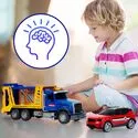 Laweta uczy poprzez działanie: kręcenie pokrętłem i manewrowanie rampą ćwiczy motorykę małą i koordynację ręka-oko, planowanie załadunku rozwija myślenie przyczynowo-skutkowe, a odgrywanie ról (kierowca, pomoc drogowa, mechanik) wzmacnia kreatywność, język i kompetencje społeczne. Efekty świetlno-dźwiękowe angażują zmysły i wydłużają koncentrację na zadaniu.