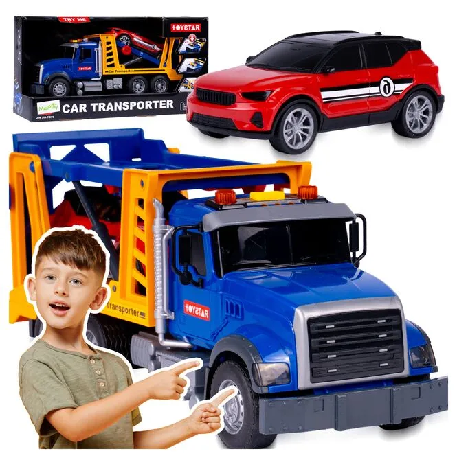 - 1× interaktywna laweta – car transporter (LED + dźwięki, ruchoma rampa)