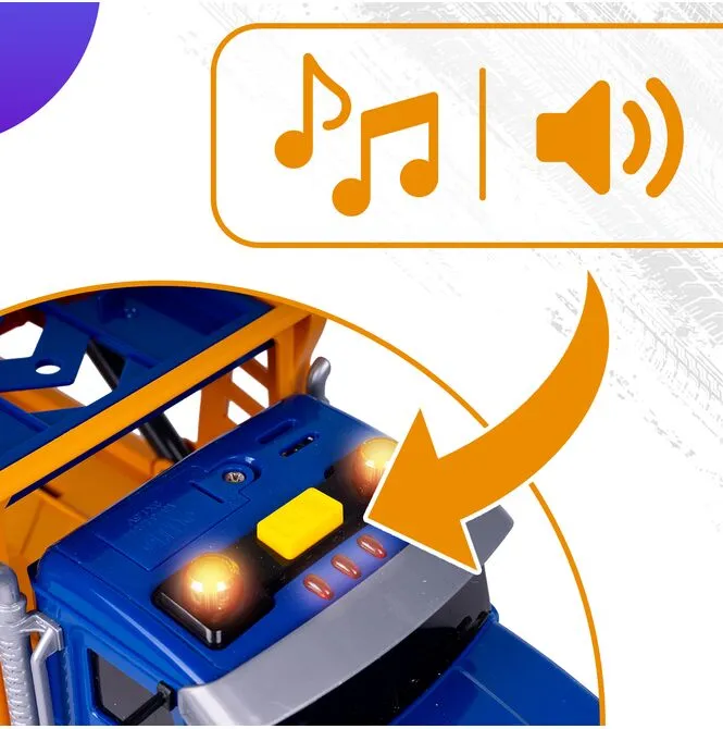 Jedno naciśnięcie przycisku i kabina miga jak pojazd specjalny, a dźwięki dodają akcji. Dzieci z radością „wzywają” pomoc drogową, sygnalizują przejazd i… wracają do zabawy jeszcze raz.