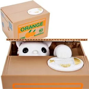 Інтерактивна скарбничка з собакою, яка їсть монети.