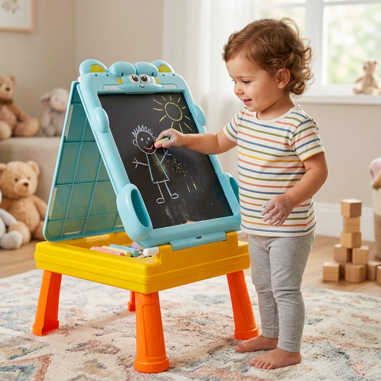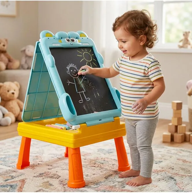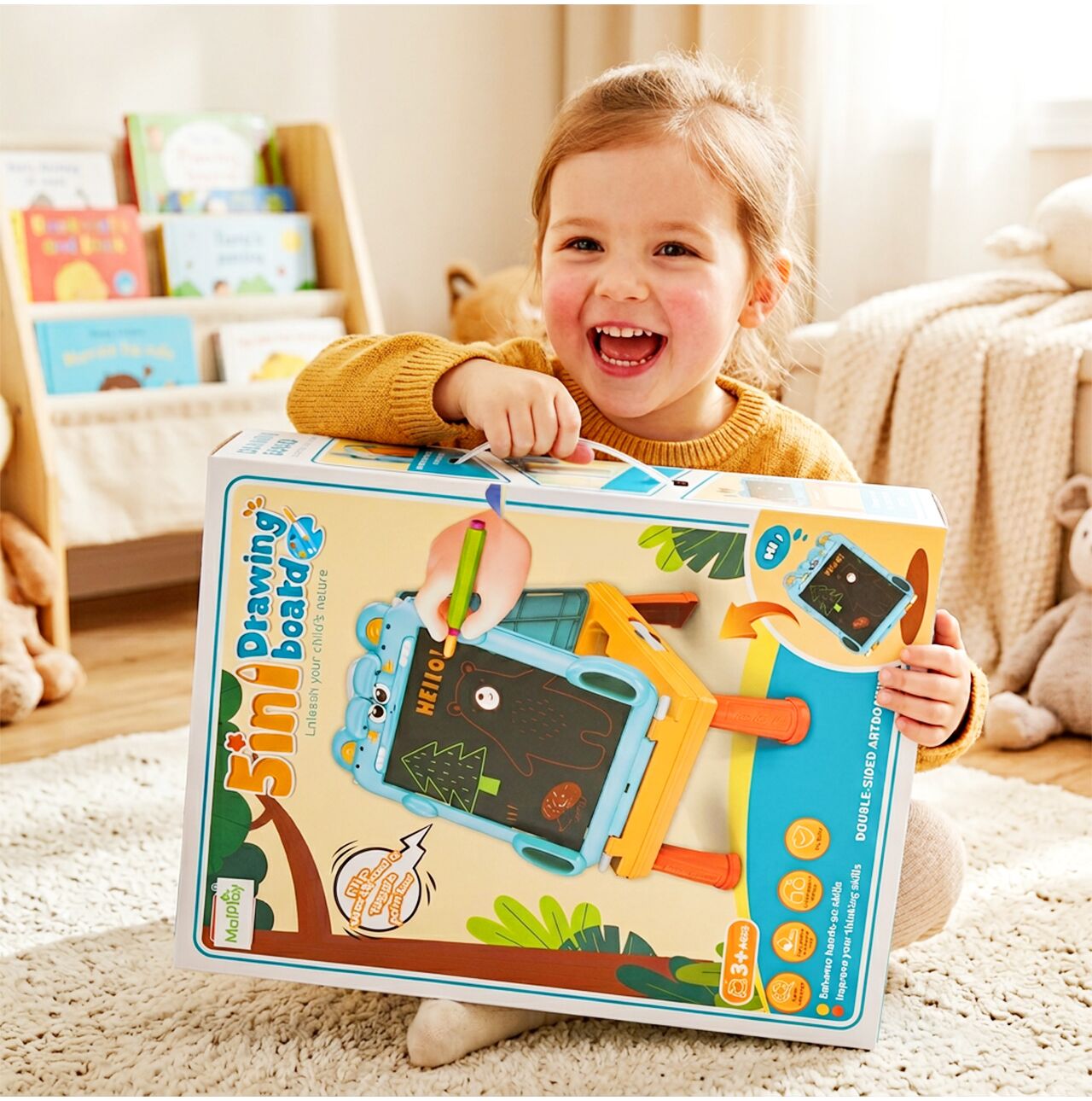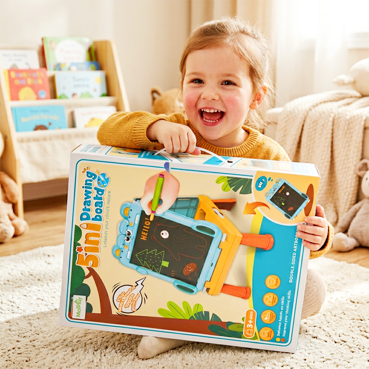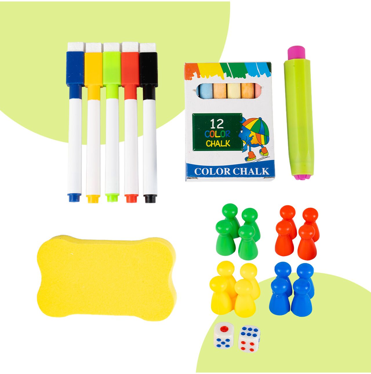 To nie jest zwykła tablica, tylko praktyczny zestaw do codziennej zabawy. Dziecko może rysować, pisać, bawić się w szkołę, rozgrywać proste gry planszowe i korzystać z produktu na kilka różnych sposobów. Taka wielofunkcyjność sprawia, że zabawka nie nudzi się po jednym dniu i chętnie wraca do użycia.
