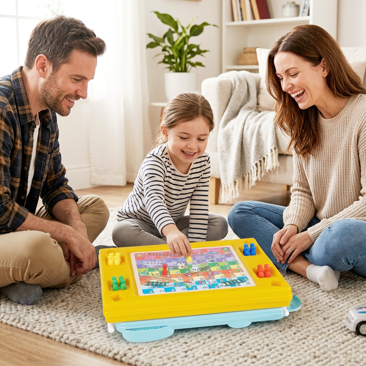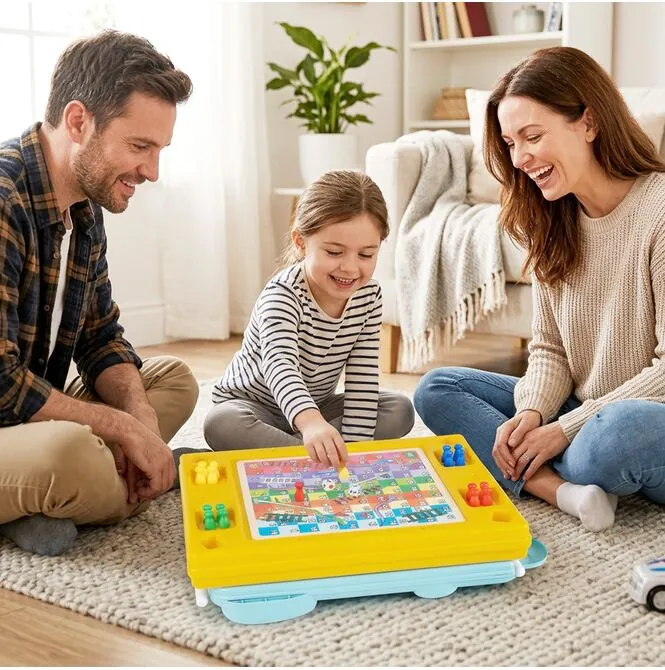 Ten zestaw świetnie sprawdza się także podczas wspólnego czasu. Można razem rysować, pisać literki, ćwiczyć cyferki albo grać w proste gry planszowe. Dzięki temu zabawka angażuje nie tylko dziecko, ale też zachęca do rodzinnej zabawy bez ekranu.