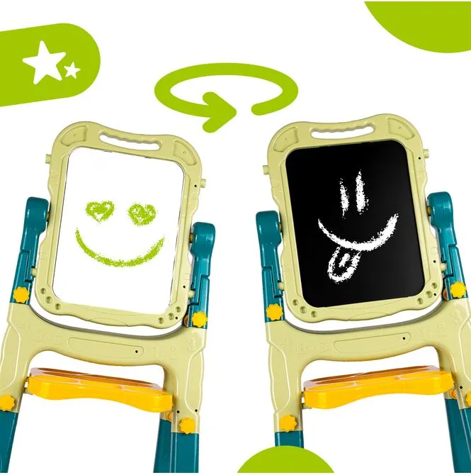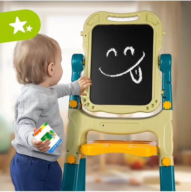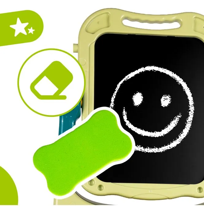 Gąbka błyskawicznie czyści stronę kredową, a markery mają ścieraki w nakrętkach – nowa zabawa zaczyna się w sekundę. Powierzchnie są gładkie i łatwo utrzymać je w czystości.