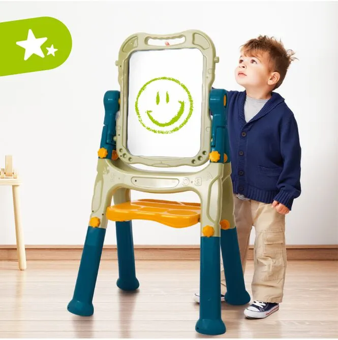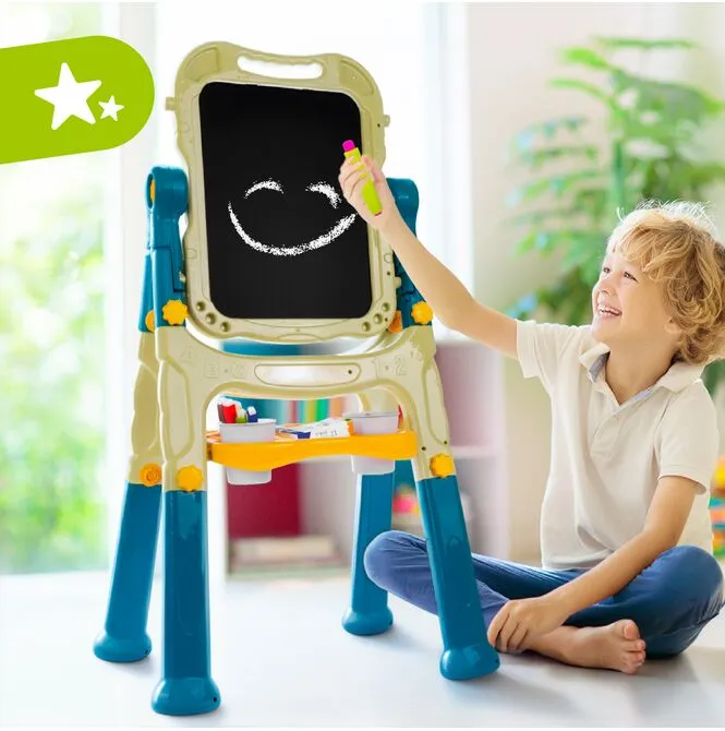 Tablica stymuluje motorykę małą, koordynację ręka-oko, ćwiczy chwyt pisarski i rozwija kreatywność. Rysowanie i pisanie wspiera naukę liter, cyfr, kolorów oraz pierwsze działania matematyczne. Dziecko uczy się planowania przestrzennego, wyrażania emocji obrazem i pracą w skupieniu. Magnesy pomagają w nauce przez elementy manipulacyjne, a wspólne rysowanie rozwija komunikację i współpracę.