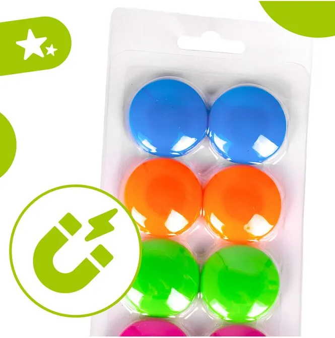 Dołączone magnesy przytrzymują kartki z zadaniami, dyplomami i kolorowankami. Świetnie sprawdzą się do zabaw „poznaj literę/kolor”, układania prostych rebusów czy planu dnia.