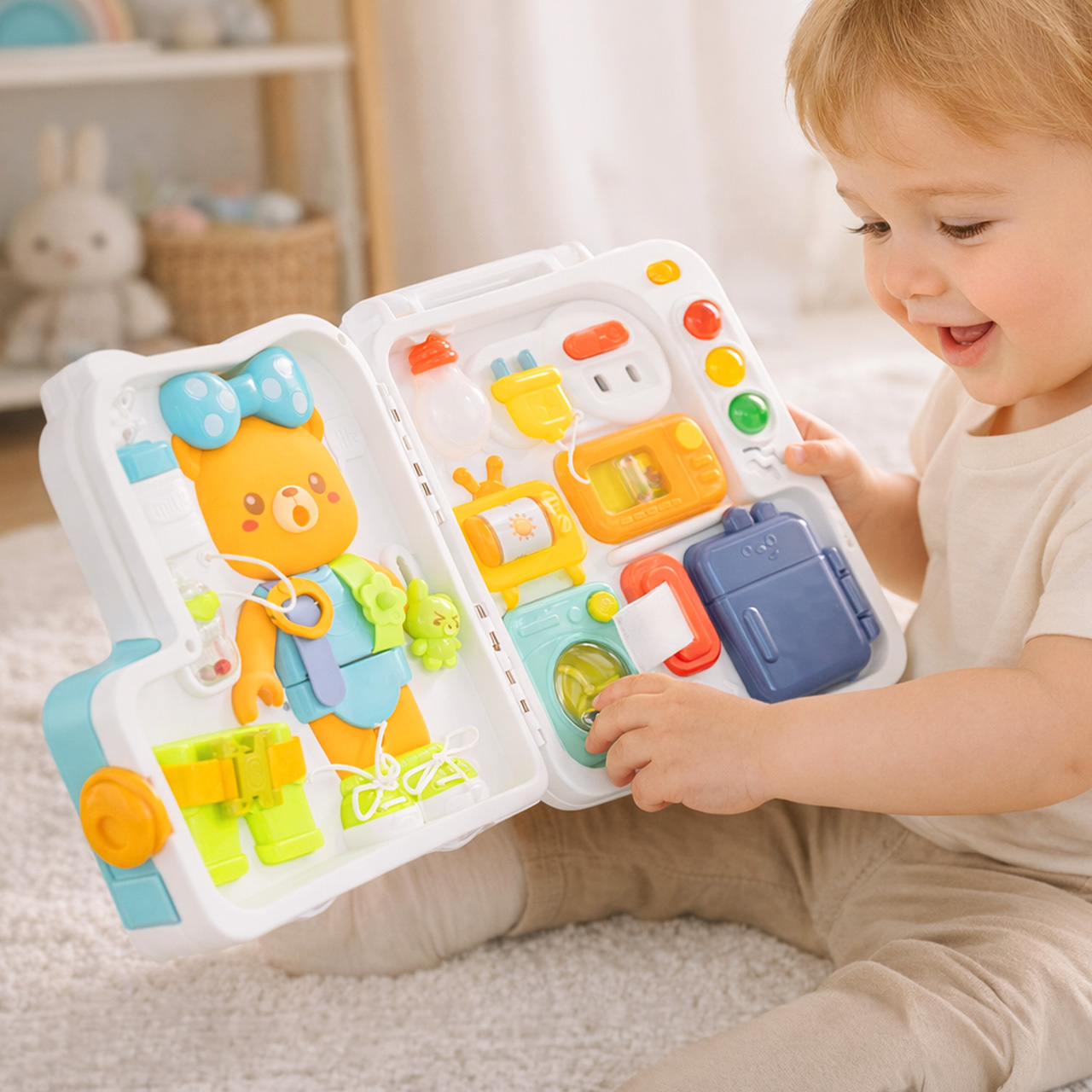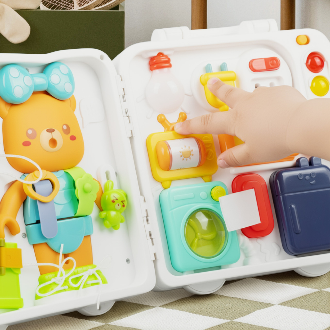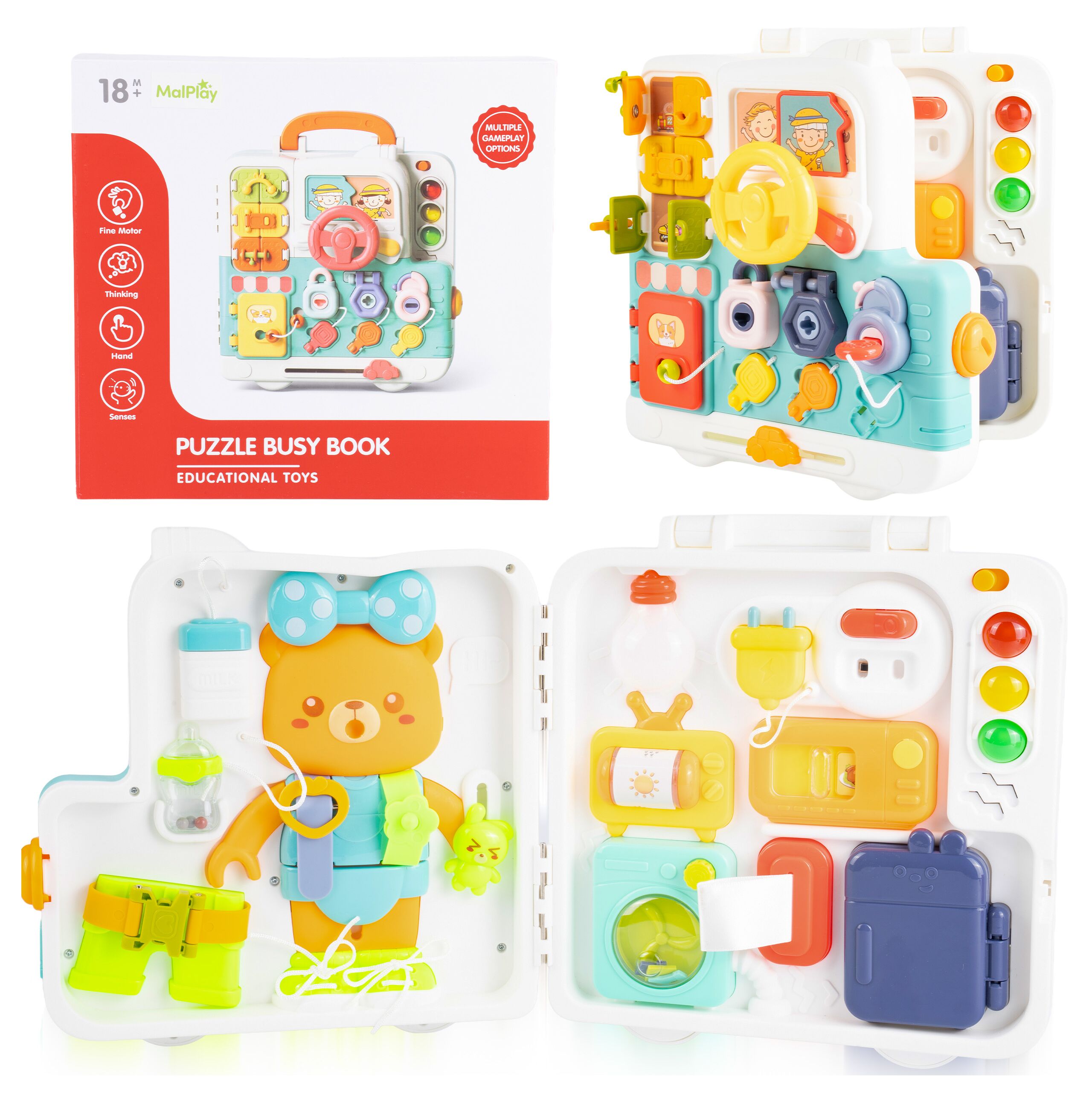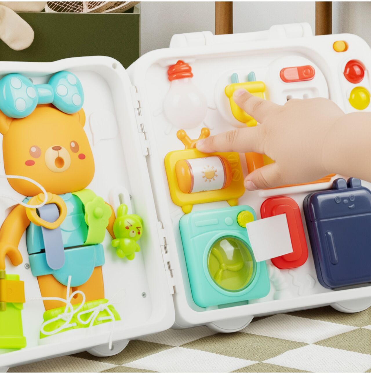 TABLICA MANIPULACYJNA MIŚ AKCESORIA WALIZECZKA SENSORYCZNA EDUKACYJNA 18M+