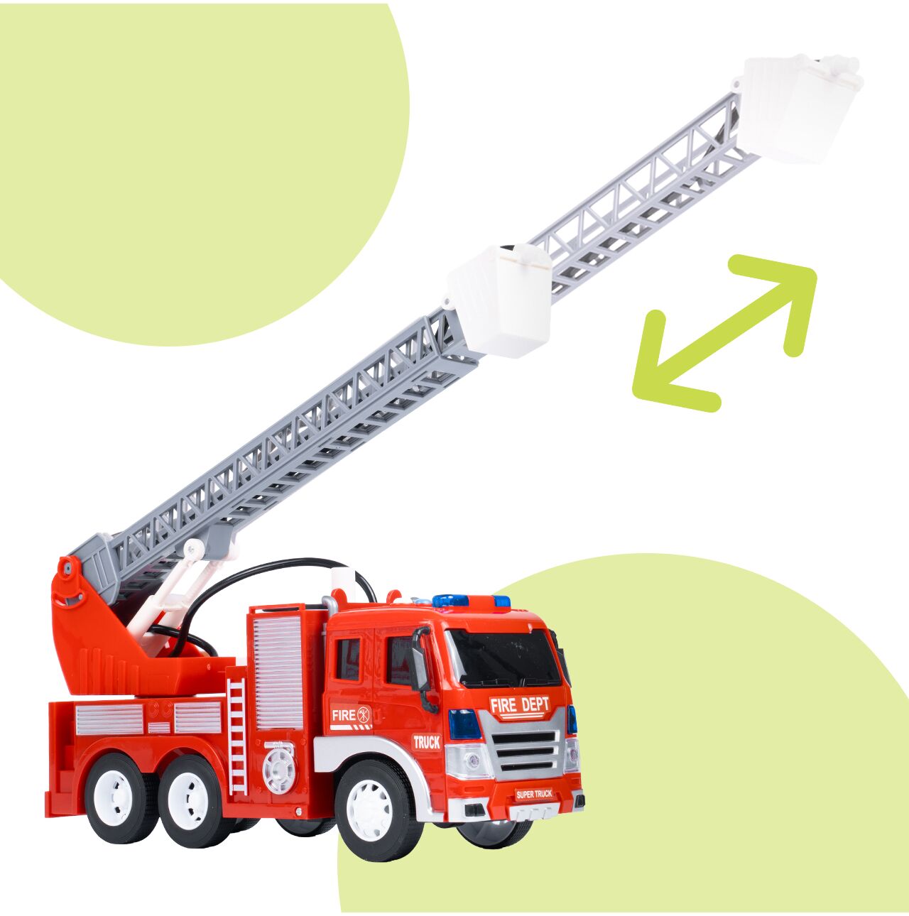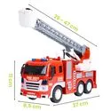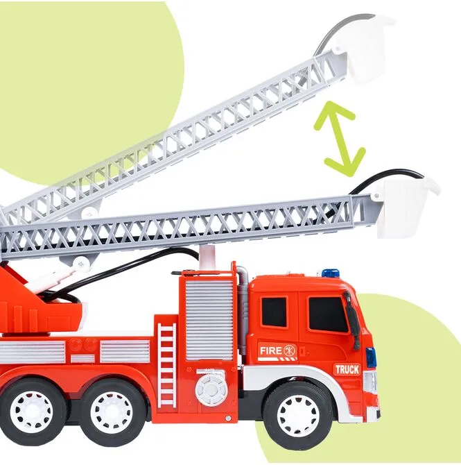 WÓZ STRAŻACKI Z NAPĘDEM RUCHOMĄ DRABINĄ DLA STRAŻAKA ŚWIATŁO DŹWIĘK 1:16